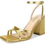 يبلغ ارتفاع الكعب المعدني الذهبي 3.35 بوصة/8.5 سم مع كعب مكتنز ومقدمة مربعة أنيقة. إنه أكثر متانة وراحة.