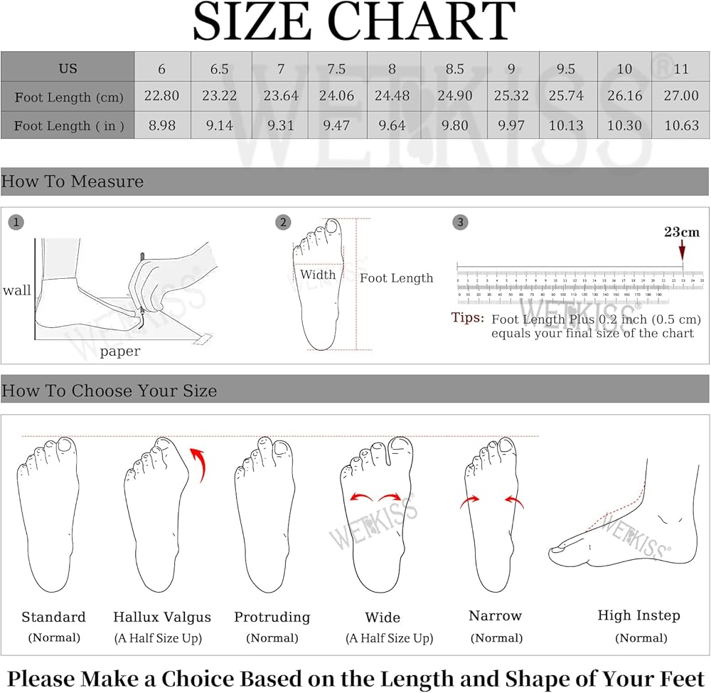 يرجى الرجوع إلى جدول المقاسات لتحديد مقاسك الصحيح، إذا كان لديك أي سؤال حول الكعوب النسائية ذات الكعب العالي. الرجاء ألا يترددوا في الاتصال بنا وسنكون هنا دائمًا لدعمك.