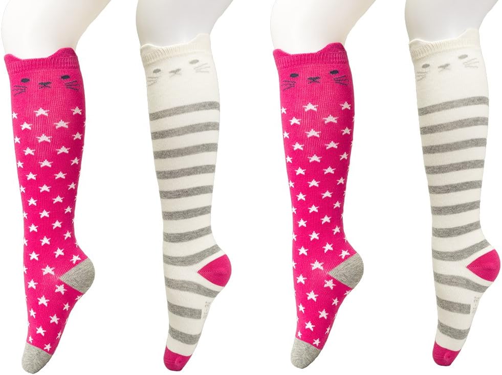 جوارب Maiwa القطنية للركبة للفتيات والأطفال، مقدمة بدون خياطة، ناعمة، متينة، 4 قطع