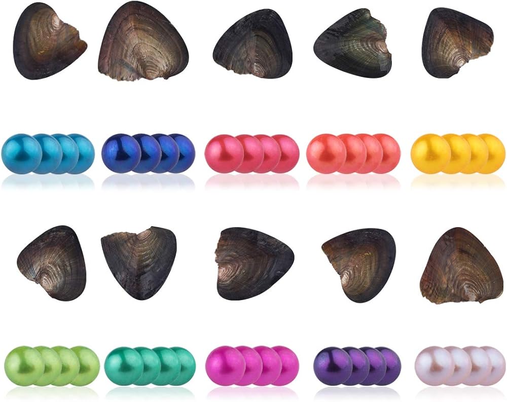 • لؤلؤ محار دائري حقيقي 7-8 ملم، 4 لآلئ في كل محار؛ 10 ألوان مختلفة من اللؤلؤ المحار في الحقيبة