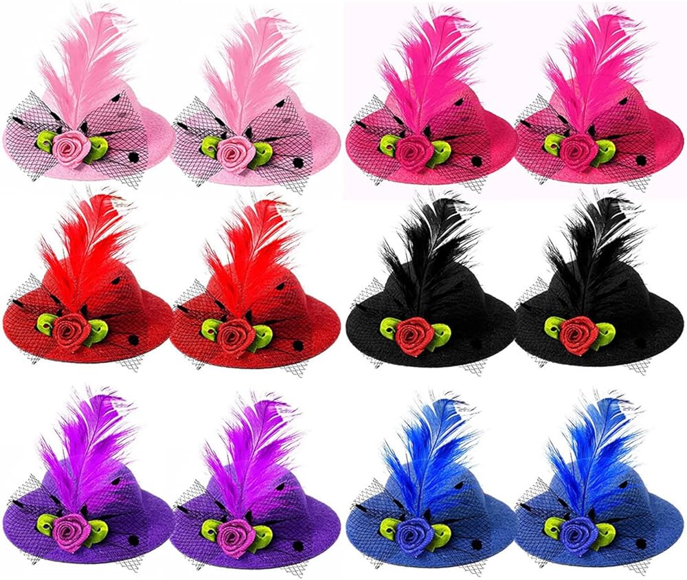 12 Pieces Tea Party Hats for Little Girls Mini Top Hat Fascinator
