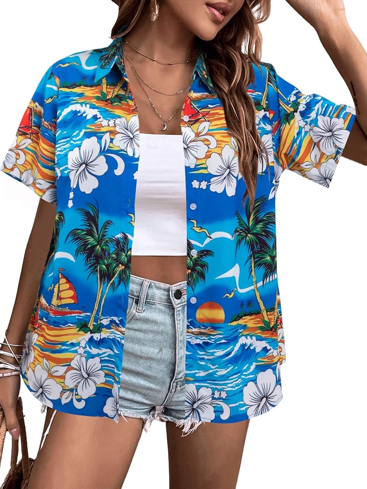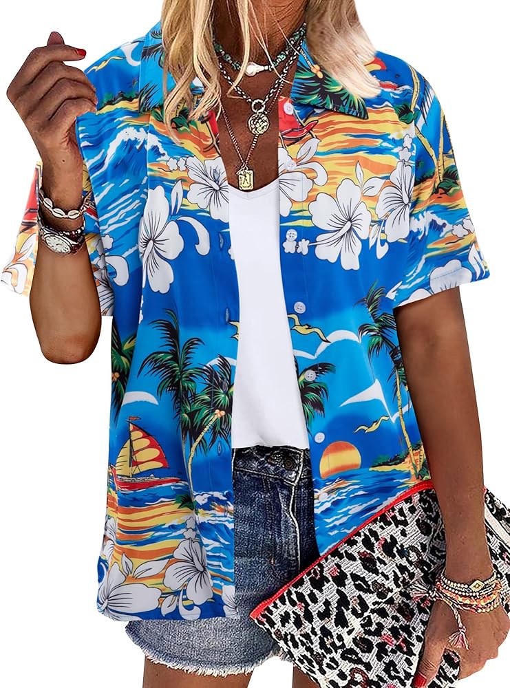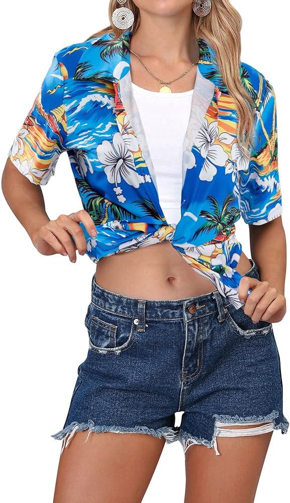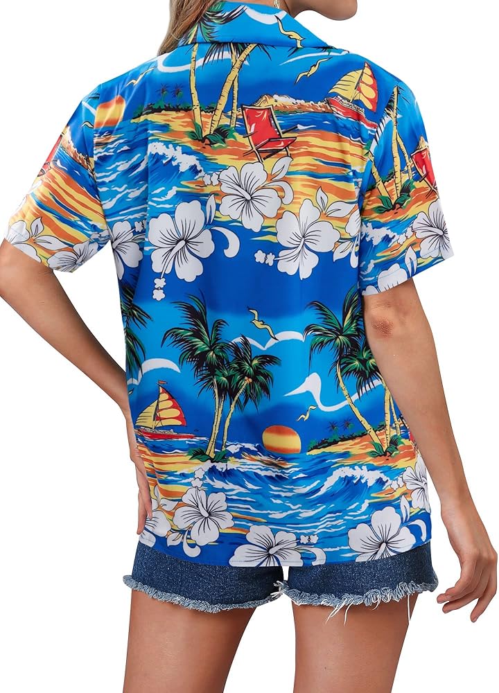 الموضة: قمصان هاواي النسائية مثالية مع الجينز أو السراويل القصيرة أو السراويل الضيقة أو السراويل أو التنورة للحصول على مظهر موجز. ضعي القميص داخل بنطالك لإطلالة جذابة هذا الصيف.