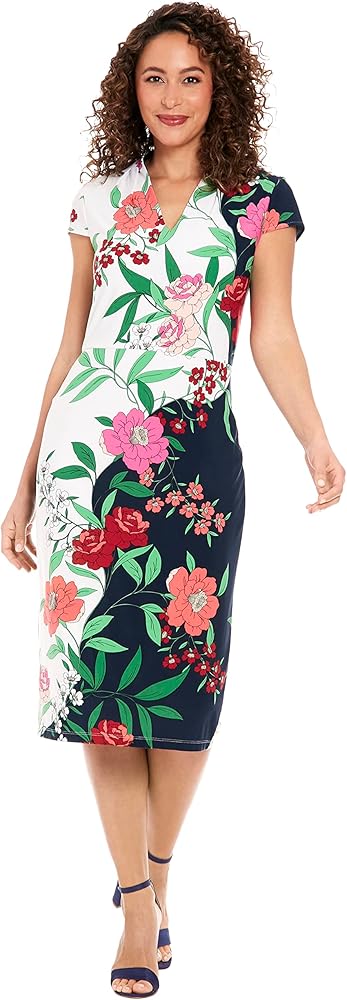V-Neck Cap Sleeve Sheath Dress Guest Of Desk to Dinner Easy Comfortable Garden Party