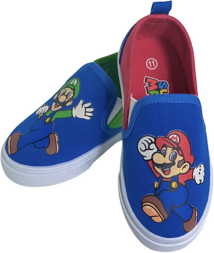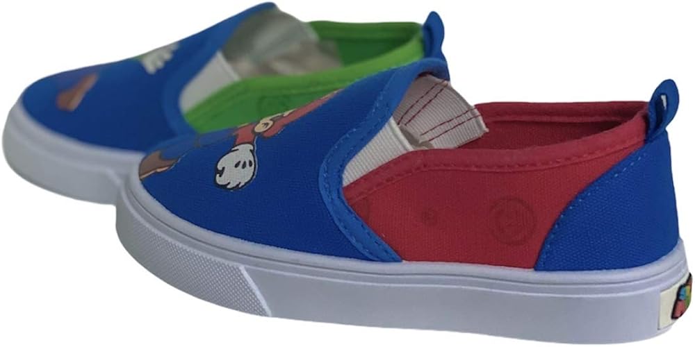 These officially licensed Super Mario Brothers slip on sneakers puts the iconic Mario and Luigi characters on full display featuring Mario on one side & Luigi on the other