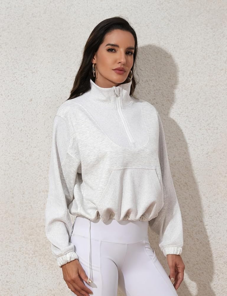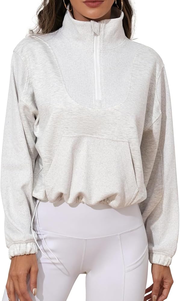 • طول فضفاض ومقصوص مثالي للسراويل الشاهقة، سويت شيرت قصير أنيق بنصف سحاب رائع مع السراويل الرياضية والجينز والسراويل الضيقة لإضفاء مظهر أنيق