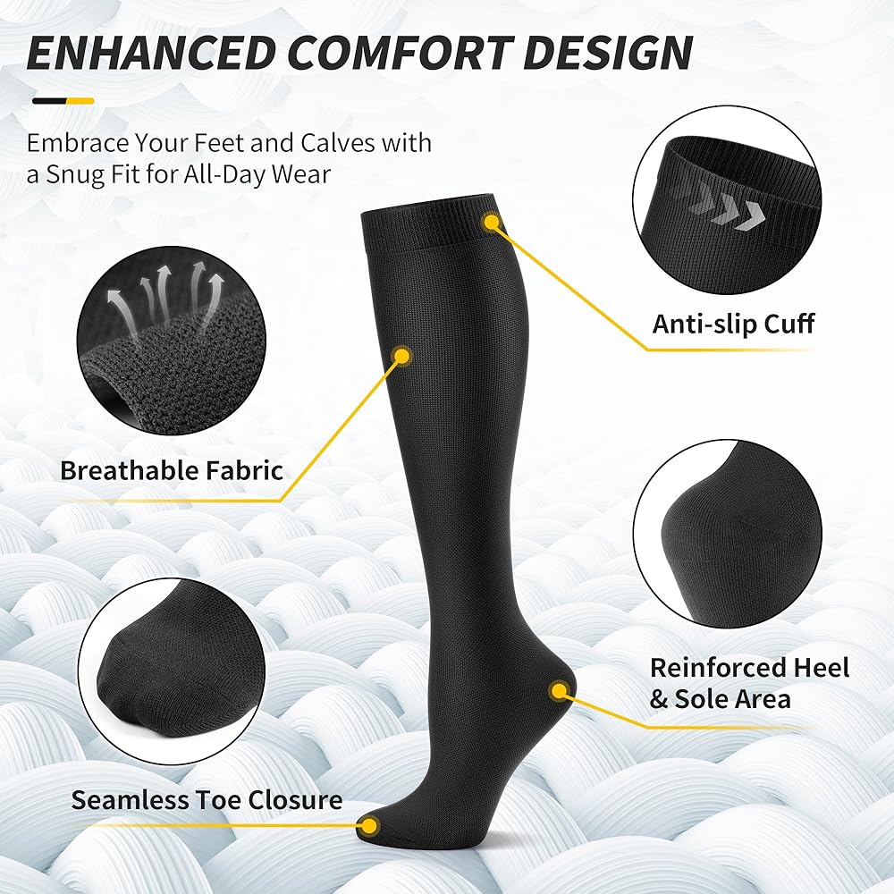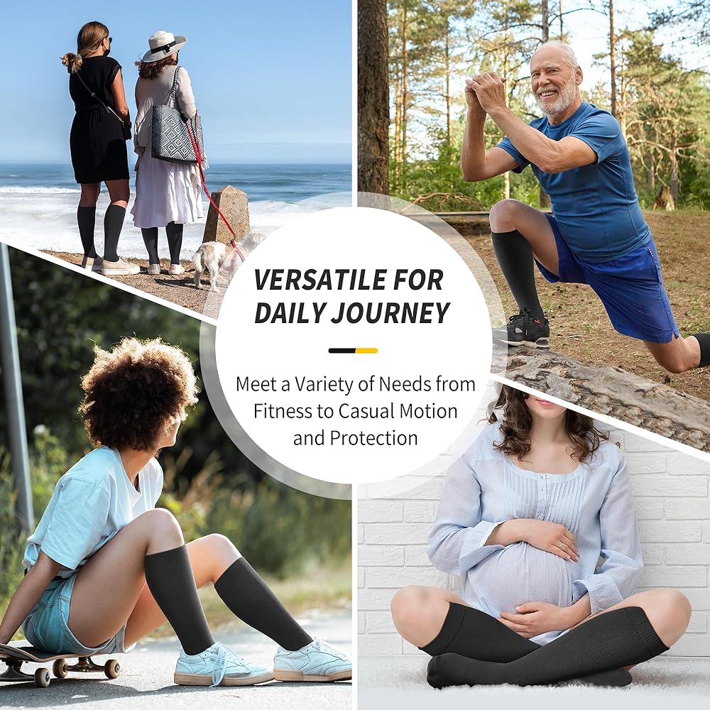 • للأداء الرياضي والارتداء اليومي: الجوارب الرياضية القابلة للتمدد مثالية للجميع بدءًا من الرياضيين وهواة اللياقة البدنية وحتى المسافرين المتكررين والعاملين في المكاتب؛ مثالي للممرضات، وأي شخص يقف طوال اليوم، والذين يعانون من مشاكل في الدورة الدموية؛ تلبي احتياجات النساء الحوامل أيضًا؛ تقديم الراحة والدعم في كل خطوة وفي كل موسم