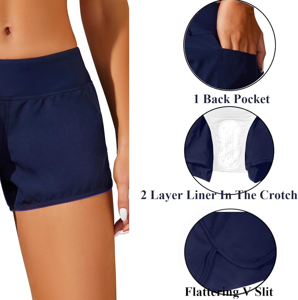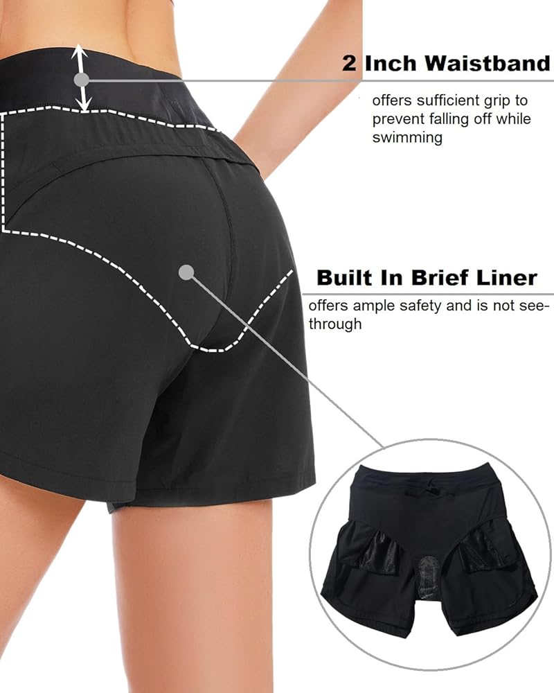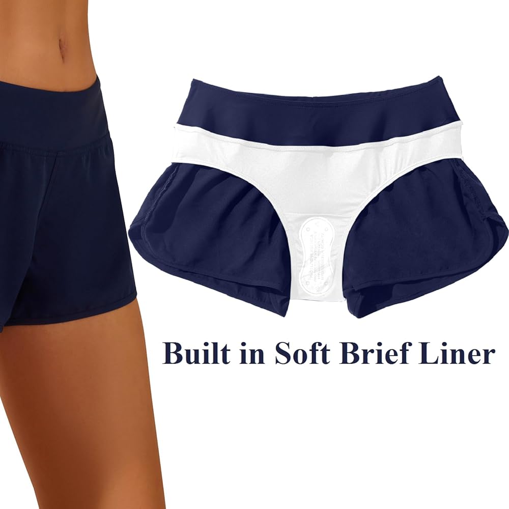 بطانة داخلية مدمجة: تتميز شورتات السباحة النسائية لدينا ببطانة داخلية مريحة ومزدوجة الطبقات في منطقة ما بين الساقين. وهذا يضمن عدم رؤية الشورتات مع الحفاظ على مظهر جميل وصحي.