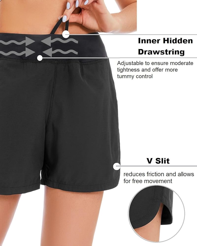 تصميم فريد: يتميز الجزء السفلي من شورت السباحة مقاس 5 بوصات بخصر عالٍ وتحكم في البطن، مما يوفر مقاسًا جذابًا ومريحًا. يضيف الشق الأنيق على شكل حرف V لمسة من الرقي إلى مجموعتك بجانب حمام السباحة.