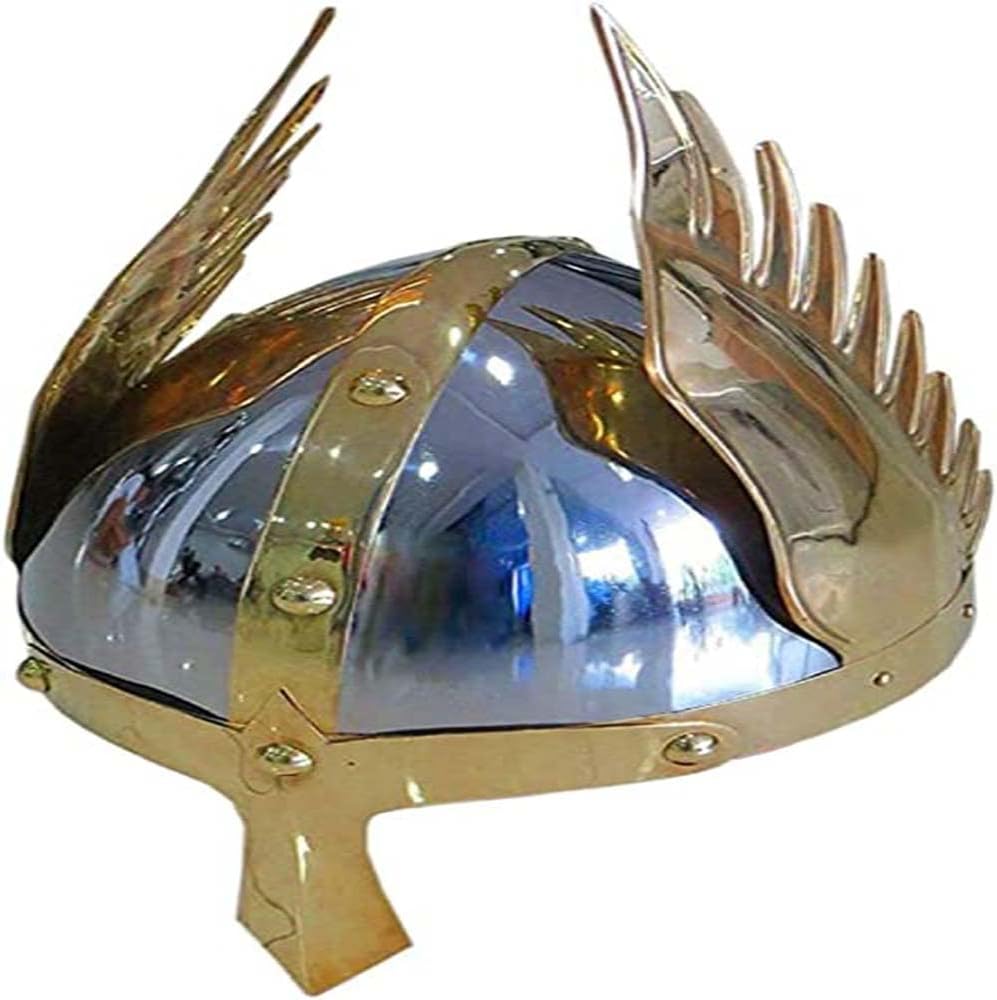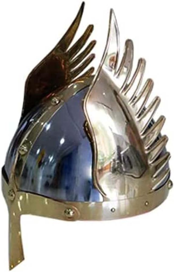 AnNafi® خوذة الجناح في العصور الوسطى | خوذة نورمان الأنف الملك | درع خوذة الفايكنج الفاخرة | خوذة مجنحة خوذة درع أجنحة الإمبراطور للبالغين | أزياء القرون الوسطى هيلم SCA LARP طبق الاصل زي تأثيري