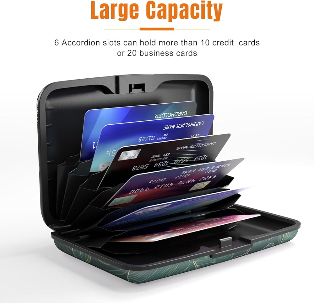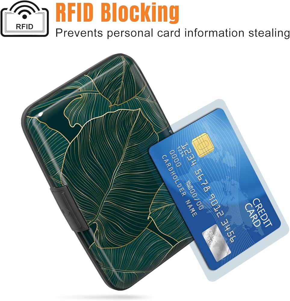 【محفظة بطاقات معدنية محمية】حامل بطاقات الائتمان هذا مصنوع من مواد ألومنيوم عالية الجودة ومشبك إغلاق بلاستيك ABS صديق للبيئة، يمكن لحافظات البطاقات المعدنية حجب ماسحات تحديد الهوية بموجات الراديو غير المرغوب فيها بشكل مثالي، وإشارات حجب تحديد الهوية بموجات الراديو الآمنة والآمنة وتحمي المعلومات الخاصة القيمة