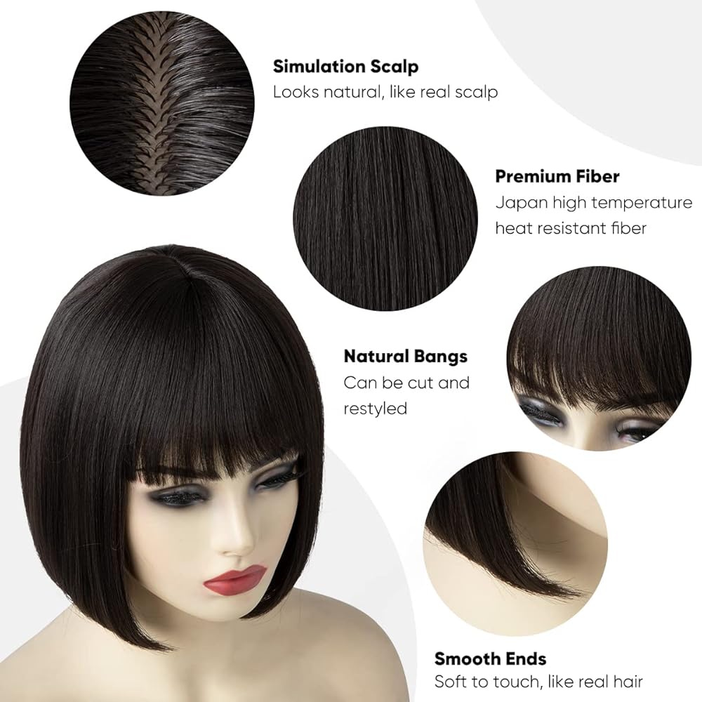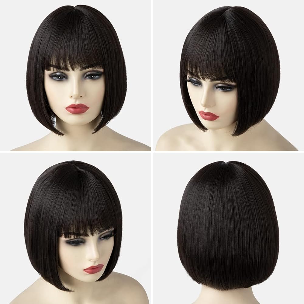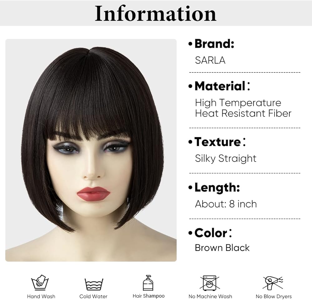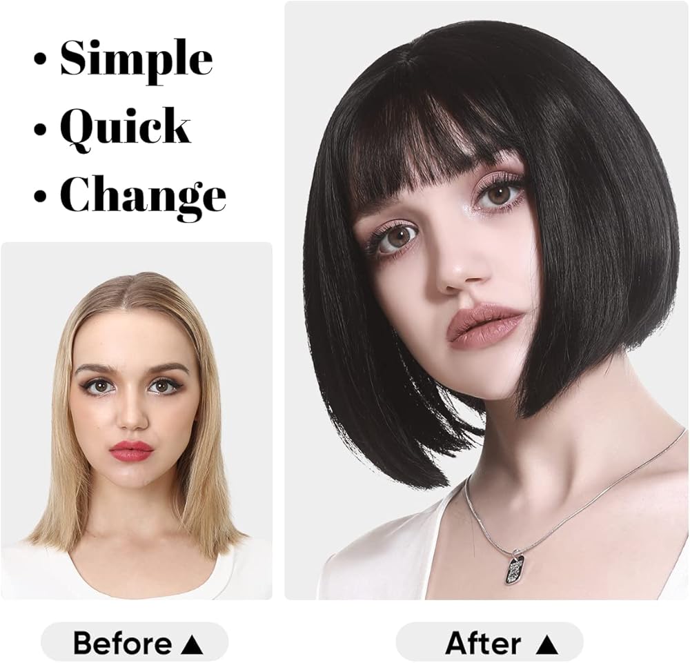خامة عالية الجودة: مصنوع من ألياف صناعية عالية الجودة بنسبة 100%، هذا الشعر المستعار المستقيم قوي وخالي من التشابك والتساقط وحريري وناعم، مما يضمن المتانة وطول العمر مع العناية الصحيحة.