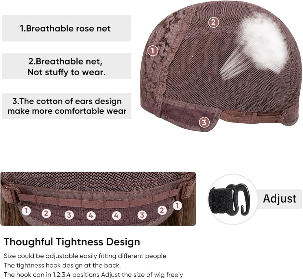 تصميم مريح: تم تصميم الشعر المستعار المستعار بشكل مريح لسهولة التركيب والإزالة، مع تصميم جديد لغطاء الشعر المستعار يسمح بتهوية أفضل.