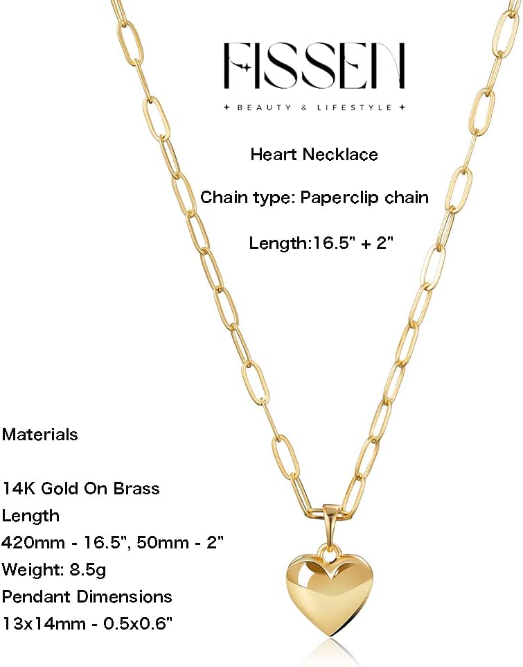 💝 انغمس في سحر قلادة Fissen Heart الخاصة بنا - قلادة ذهبية مبهجة تجمع بين الجمال الأنيق والمظهر الأنيق. هذه المجوهرات المطلية بالذهب عيار 14 قيراط، المصنوعة يدويًا بدقة متناهية، تجسد جوهر الحب والصداقة.
