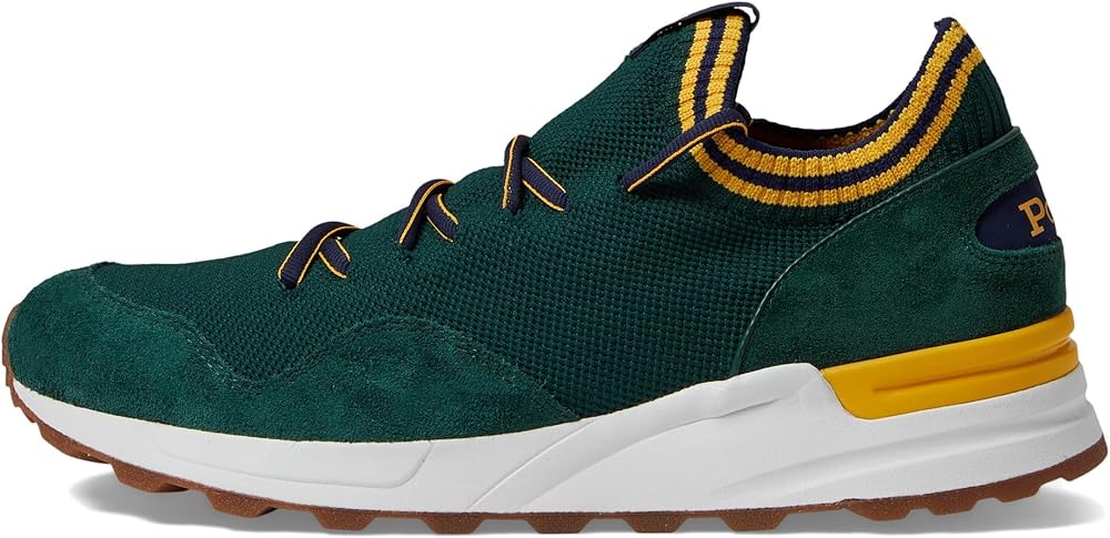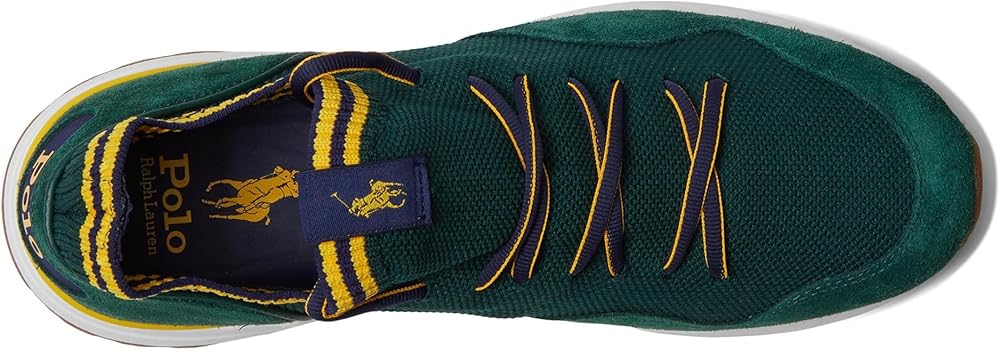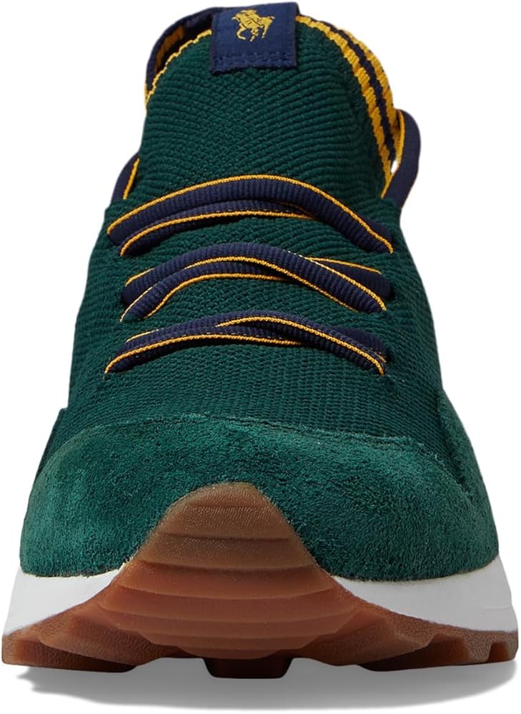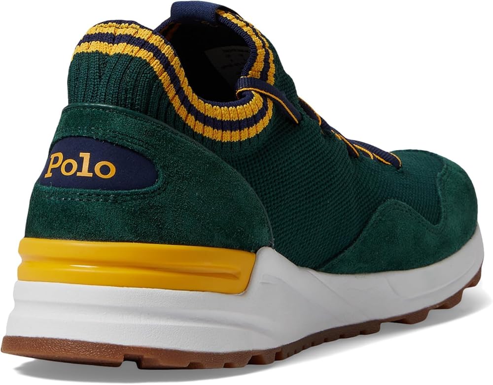 Give a modern twist to your everyday look by choosing the Polo Ralph Lauren Trackster 200II sneakers. The retro-inspired sneakers have modern performance technology and feature knitted polyester upper paneled with suede at the toe and heel. The shoes have textile lining and microsuede ergonomic molded foam footbed. Lace-up closure. Stripes at the collar and lace. Signature Pony woven label on the tongue. "Polo" printed on the heel. TPU-reinforced heels. Round toe design. Premium EVA midsole. Rubber outsole.