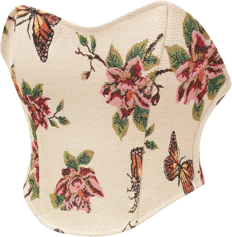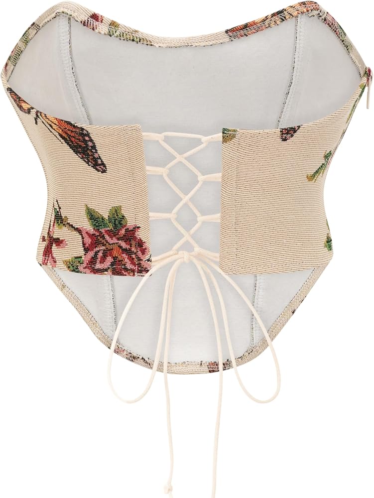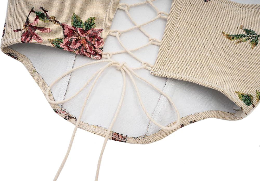يتكون هذا الكورسيه الجميل من مواد عالية الجودة قابلة للتنفس. إنه ناعم وناعم وخفيف الوزن. إنه مريح للارتداء طوال حياتك اليومية. الترابط الداخلي يشكل صدرك بشكل جيد، مما يوفر مظهرًا عصريًا وجذابًا مع الطباعة الزيتية مثل المظهر