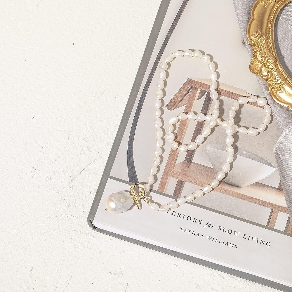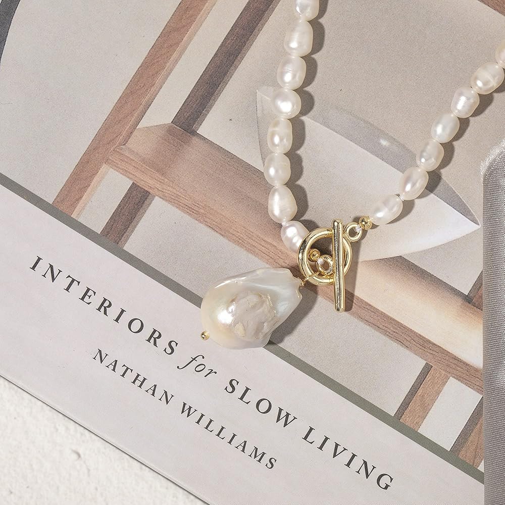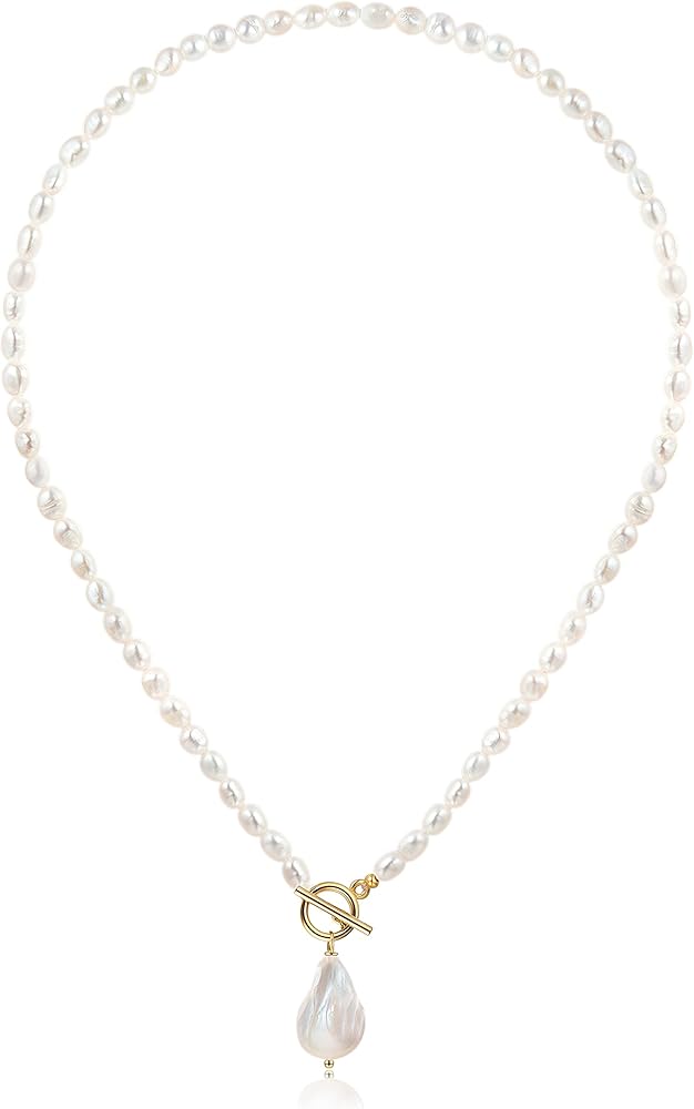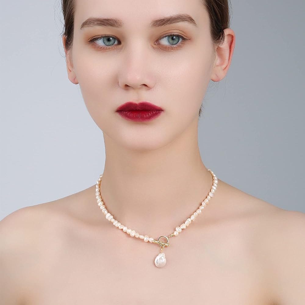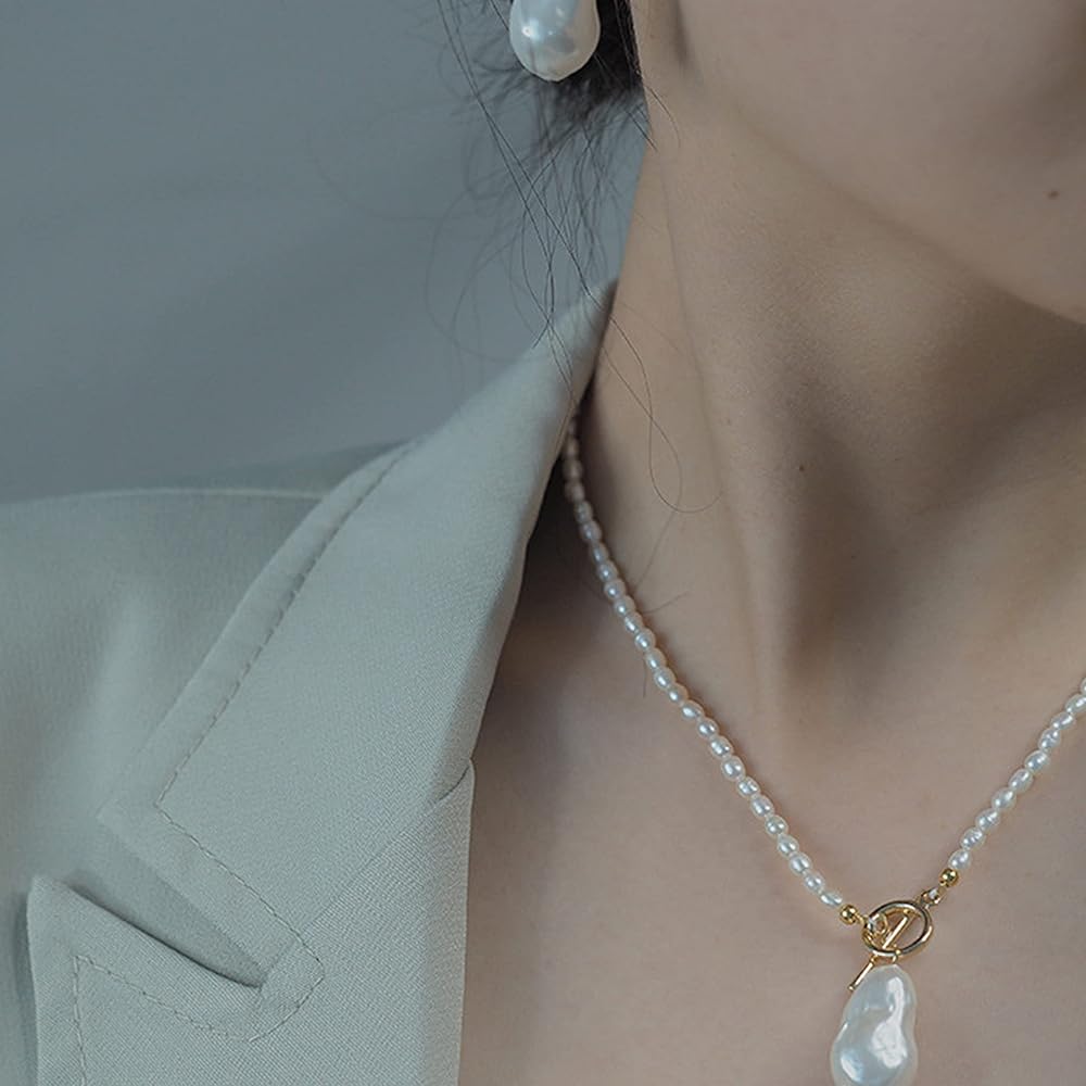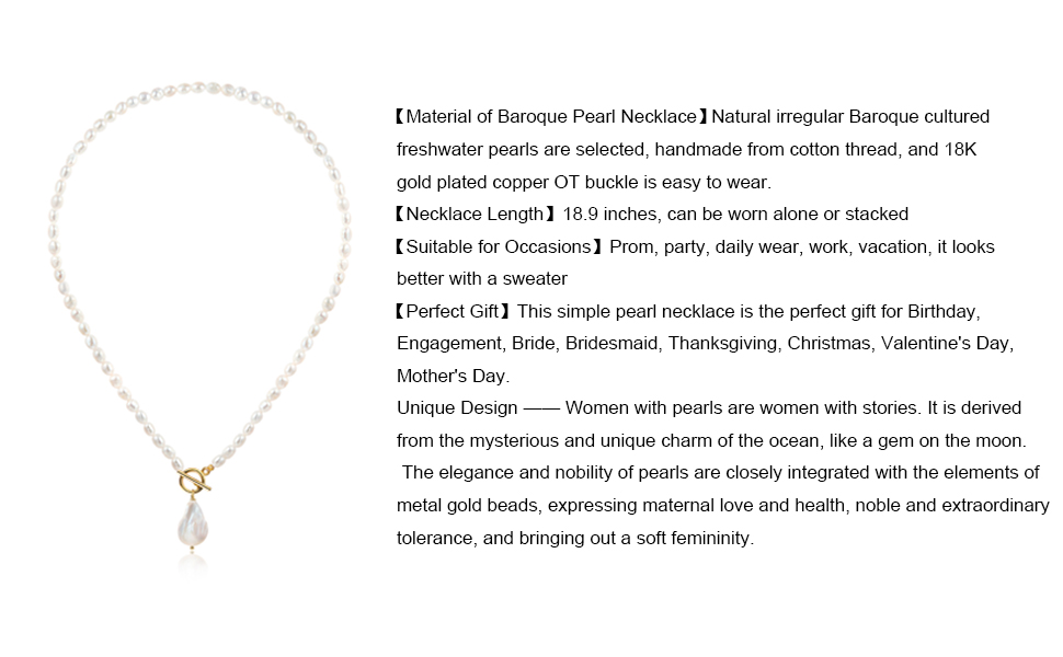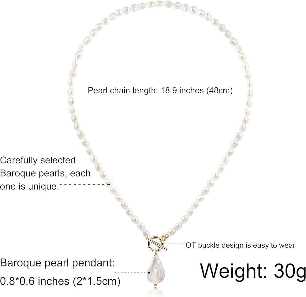 💙المقاس - طول سلسلة اللؤلؤ: 18.92 انش، قلادة اللؤلؤ الباروكي: 0.78 × 0.6 انش، تصميم مشبك OT سهل الارتداء.