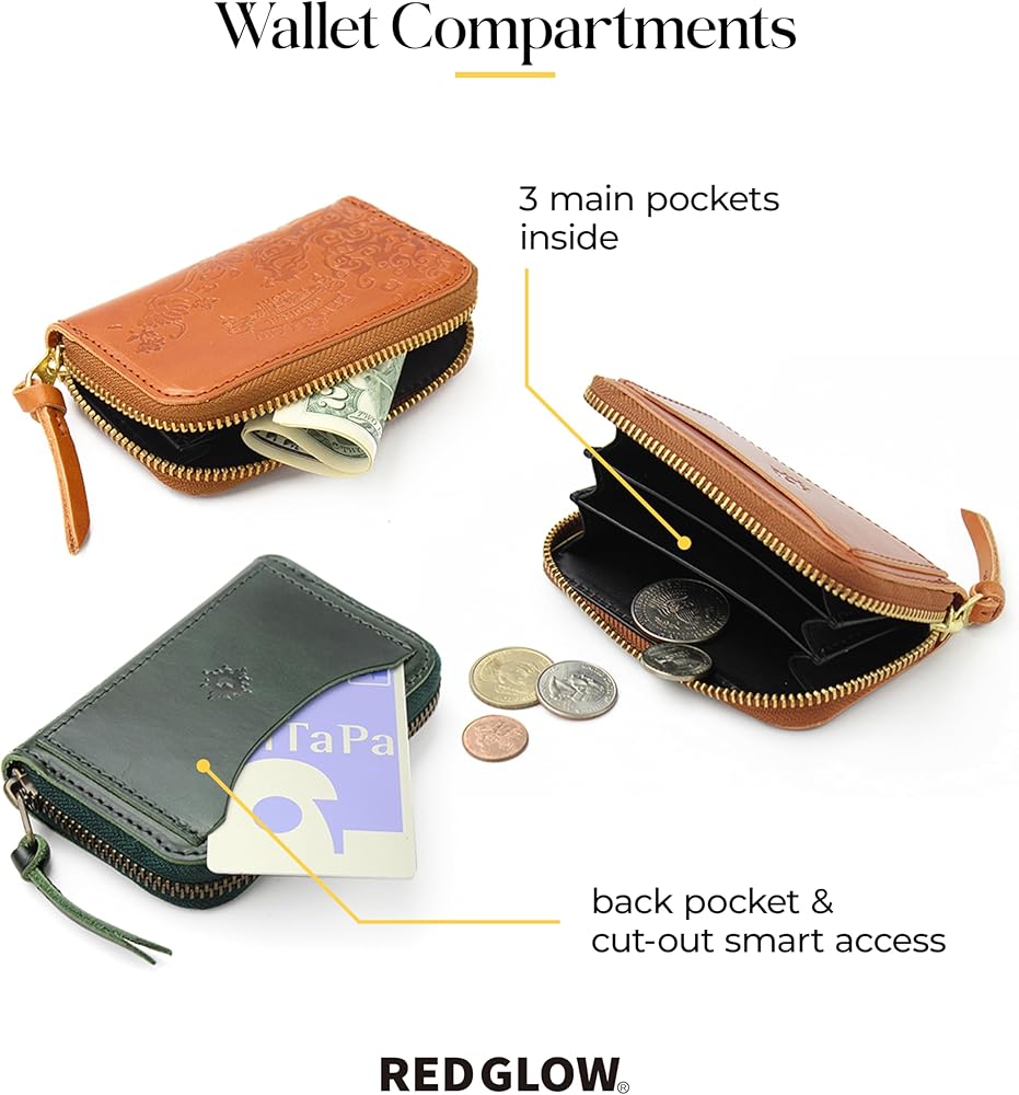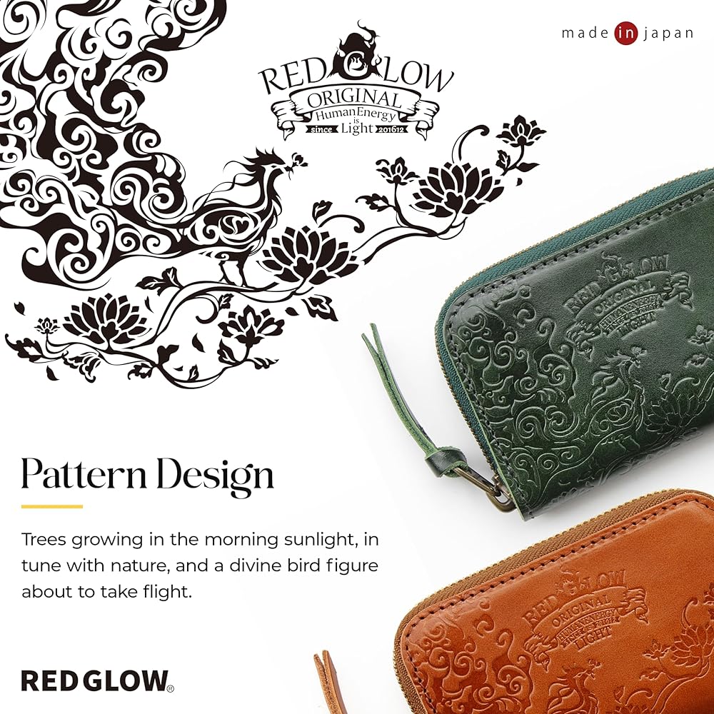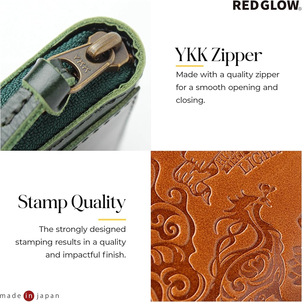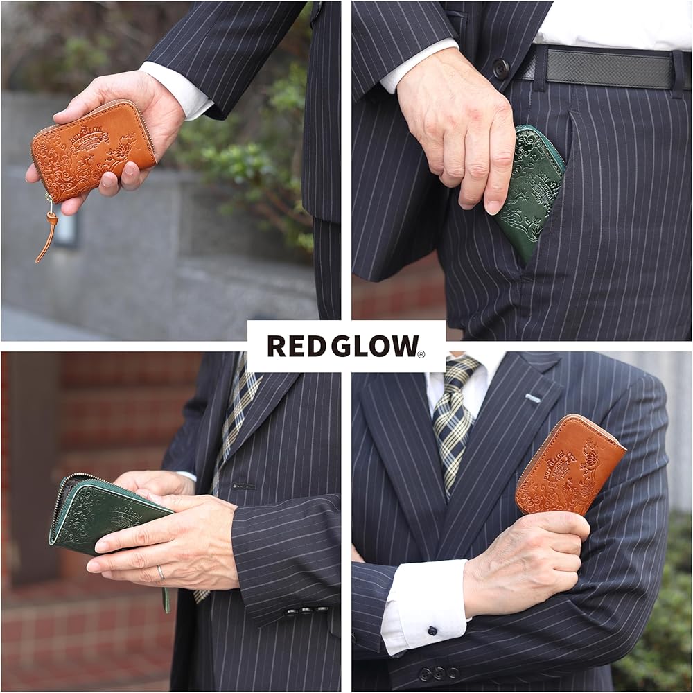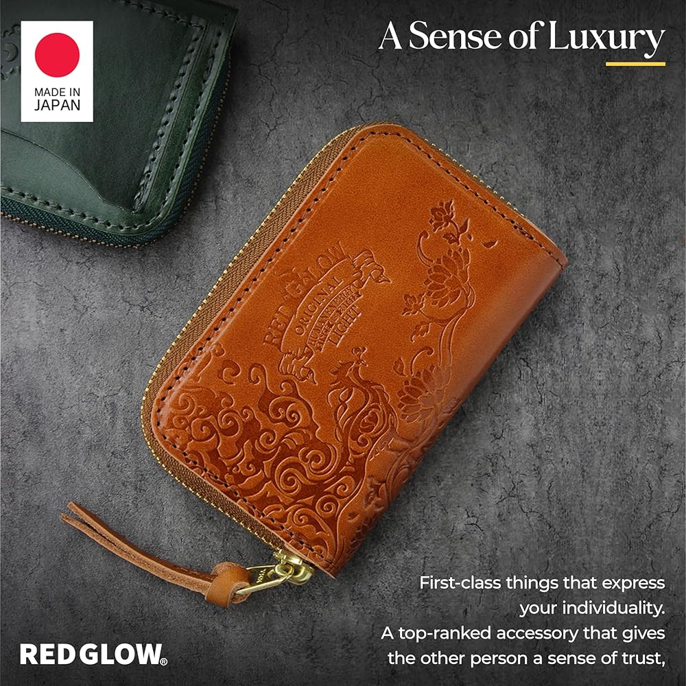 محفظة نقود معدنية من الجلد الطبيعي للرجال من Red Glow RG-007، حافظة بطاقات، صنع في اليابان، جلد طبيعي، سحاب أرضي (جملي)