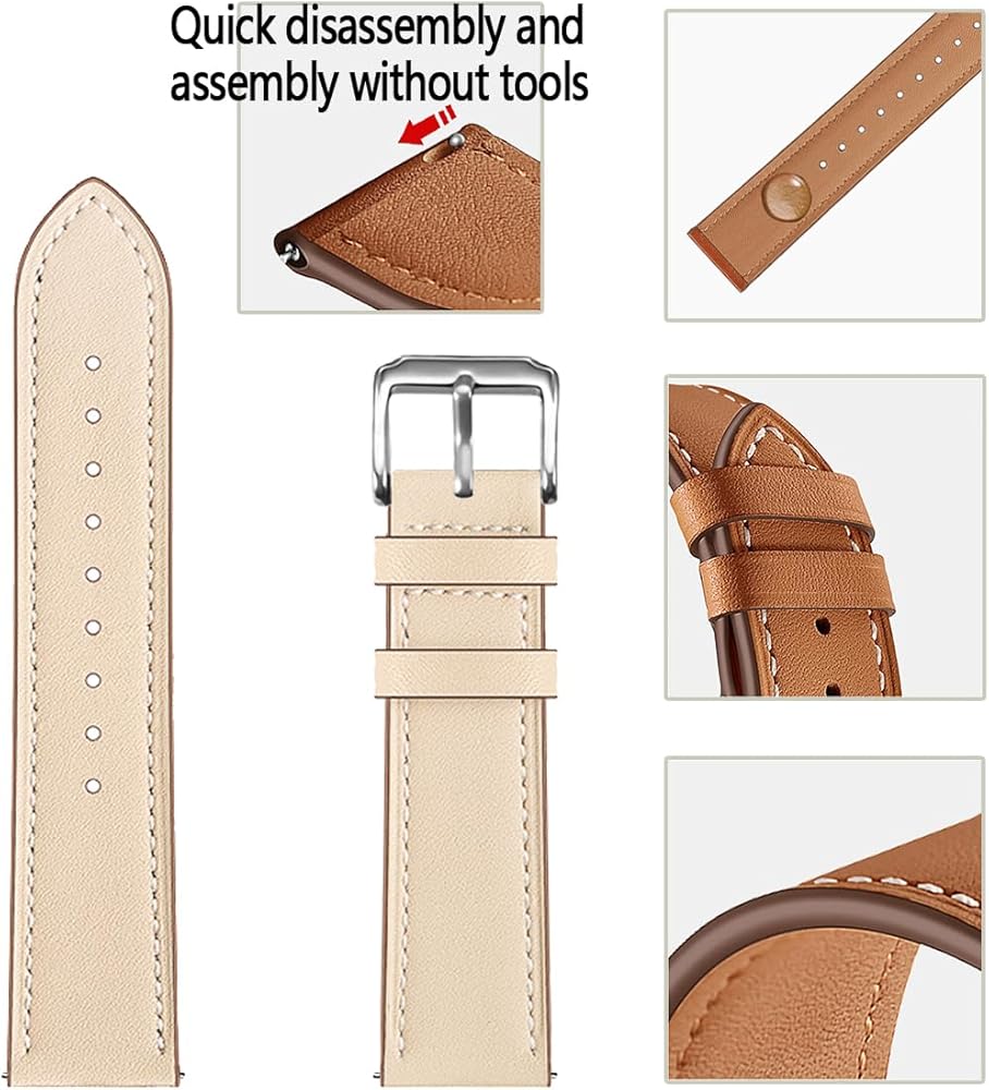 【سهل التركيب والضبط】- الحزام الجلدي المجهز بقضبان زنبركية سريعة التحرير، يمكن تركيبه وإزالته بسهولة من ساعتك. يمكنك التبديل بسهولة بين الأشرطة المختلفة لتتناسب مع ملابسك أو حالتك المزاجية. بالإضافة إلى ذلك، يتضمن الحزام فتحات تعديل متعددة، مما يضمن ملاءمة مثالية للمعصمين بمختلف أحجامهم.