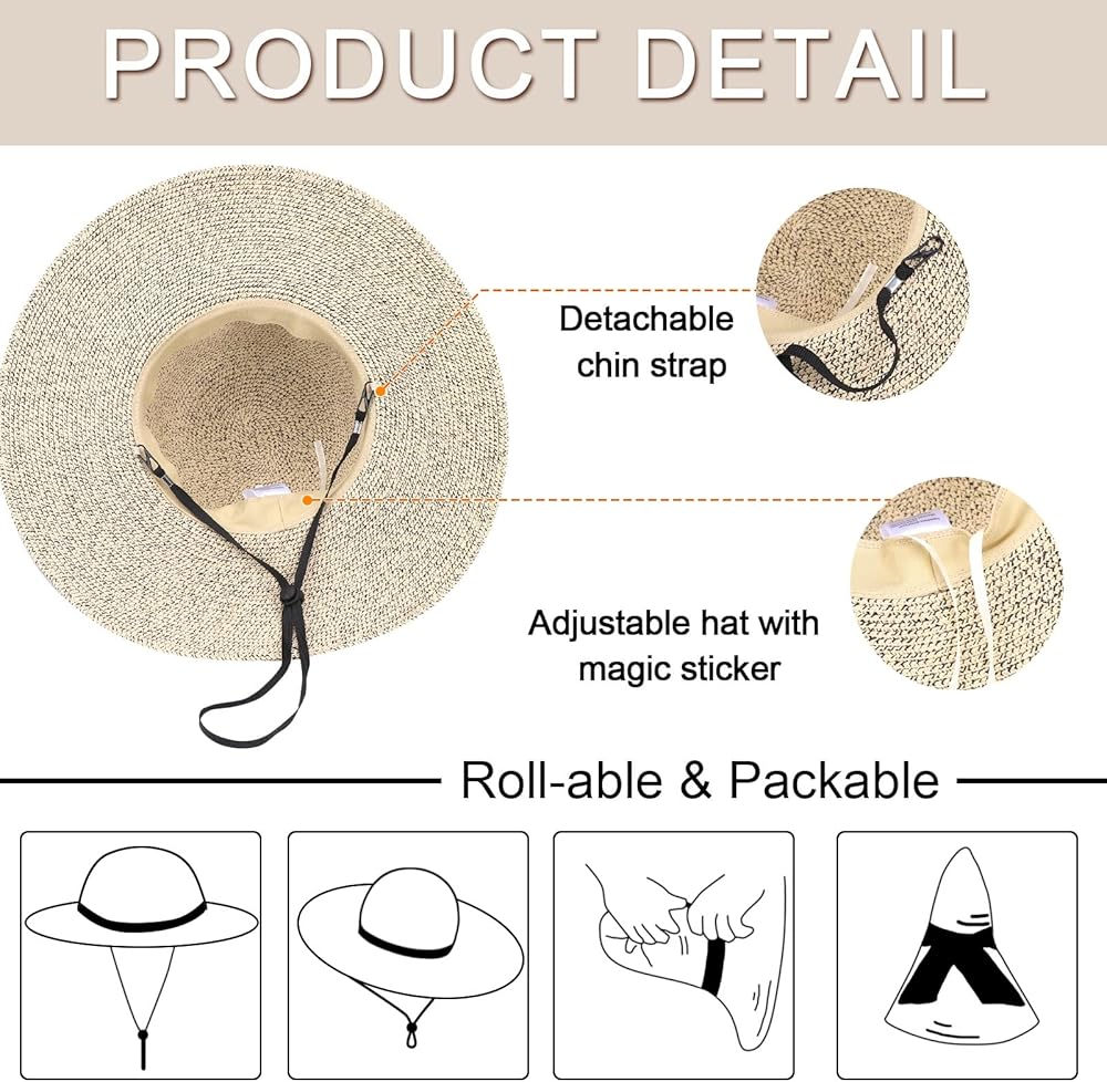 【Premium Straw Hat Foldable & Packable】- Summer Beach straw hat is made of Premium strong, durable paper straw which is make Cute and lightweight, breathable and comfortable for the hot summer weather. Easily fold your hat and take it on-the-go. Fits in most purses and beach bags.