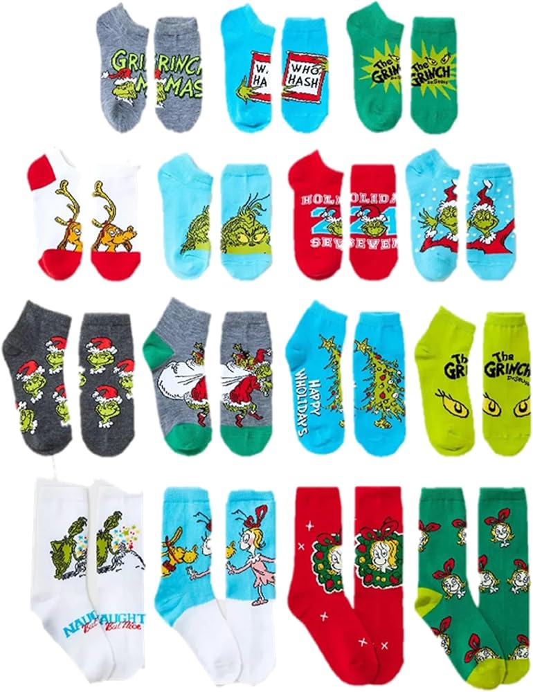 تقويم مجيء الجوارب للأطفال ذا جرينش 15 Days of Socks. أضف نمط الكريسماس اللطيف إلى خزانة ملابس طفلك الاحتفالية مع تقويم المجيء لمدة 15 يومًا من الجوارب من ذا جرينش هذا. مصنوعة من قماش خفيف الوزن مع لمسة من السباندكس، من المؤكد أن هذه الجوارب ستحافظ على راحة قدميها. يتضمن تقويم المجيء هذا أربعة أزواج من الجوارب الطاقم وأربعة أزواج من الجوارب الرباعية وسبعة أزواج من الجوارب غير المرئية، كل منها يتميز بشخصيات جرينش وماكس وغيرها من شخصيات جرينش والنصوص لجعل العد التنازلي للكريسماس أكثر إثارة.