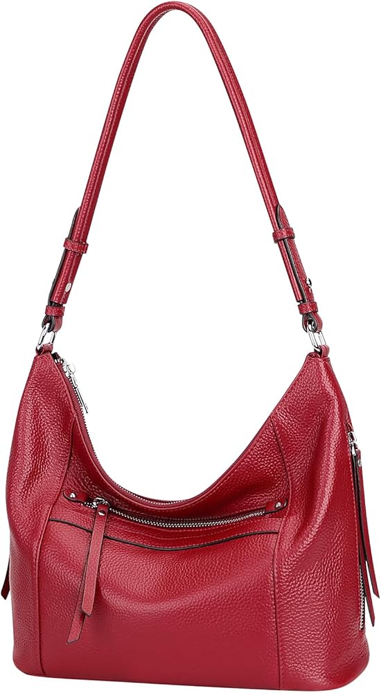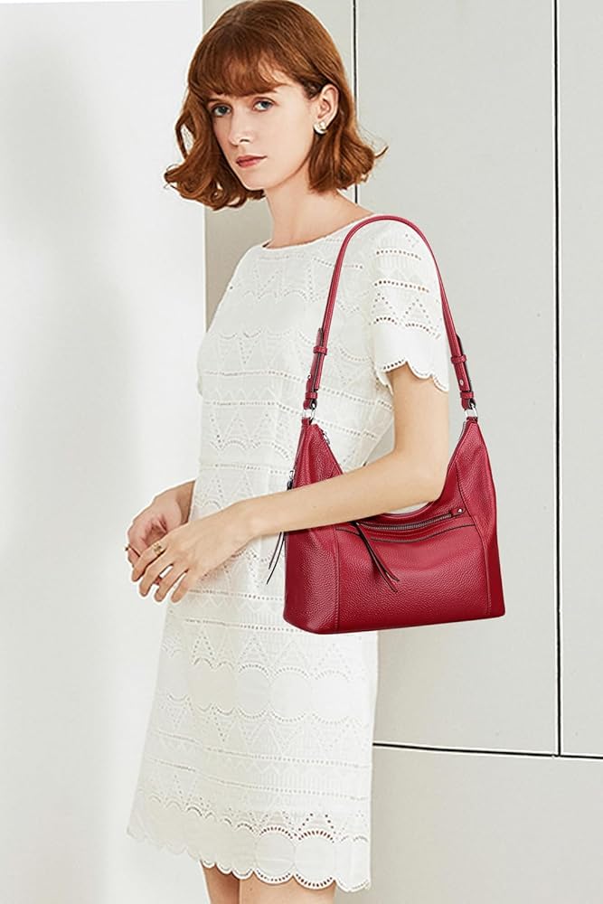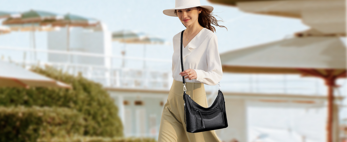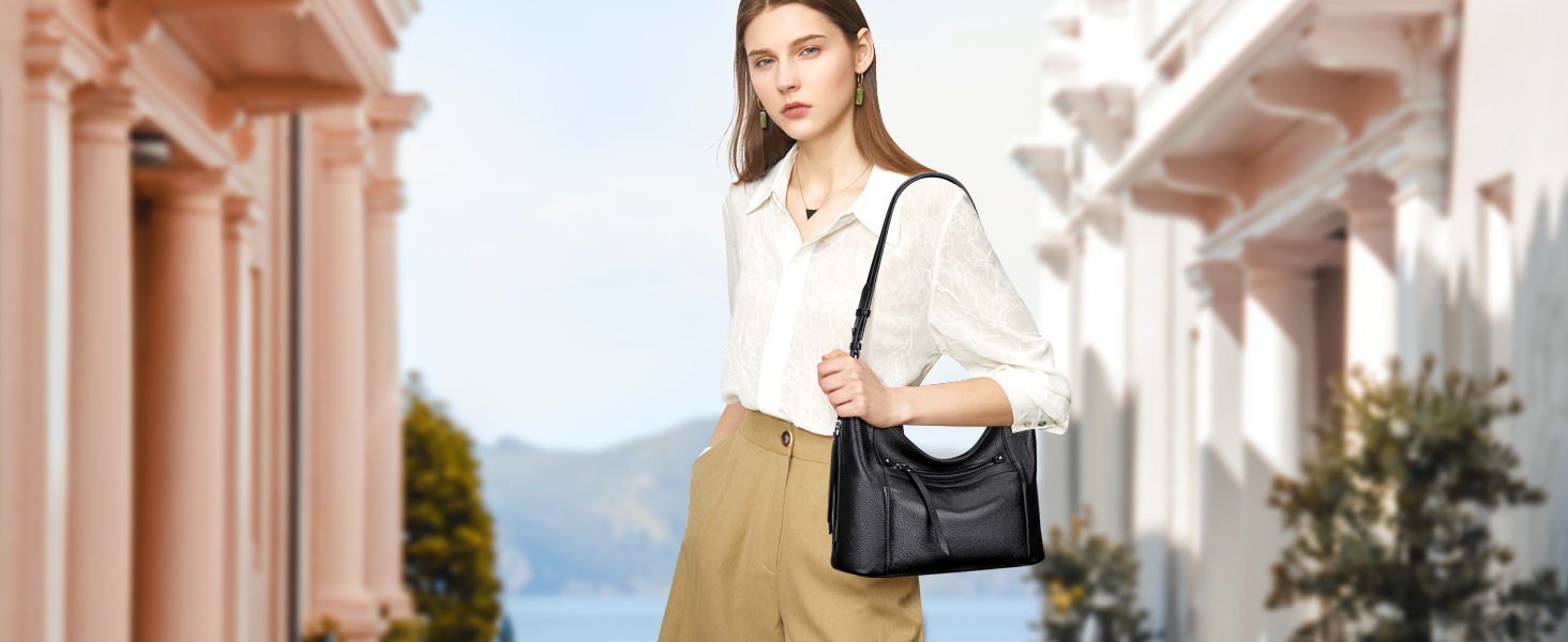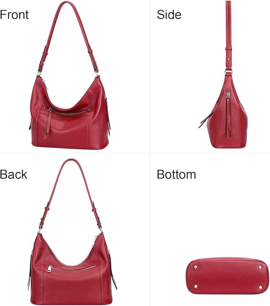 • 【الخامة】: شنطة كتف هوبو للنساء مصنوعة من الجلد الطبيعي (جلد البقر عالي الجودة). البطانة مصنوعة من البوليستر المتين، أجزاء صلبة فضية عالية الجودة. أربعة مسامير سفلية لحماية حقيبتك من التآكل.