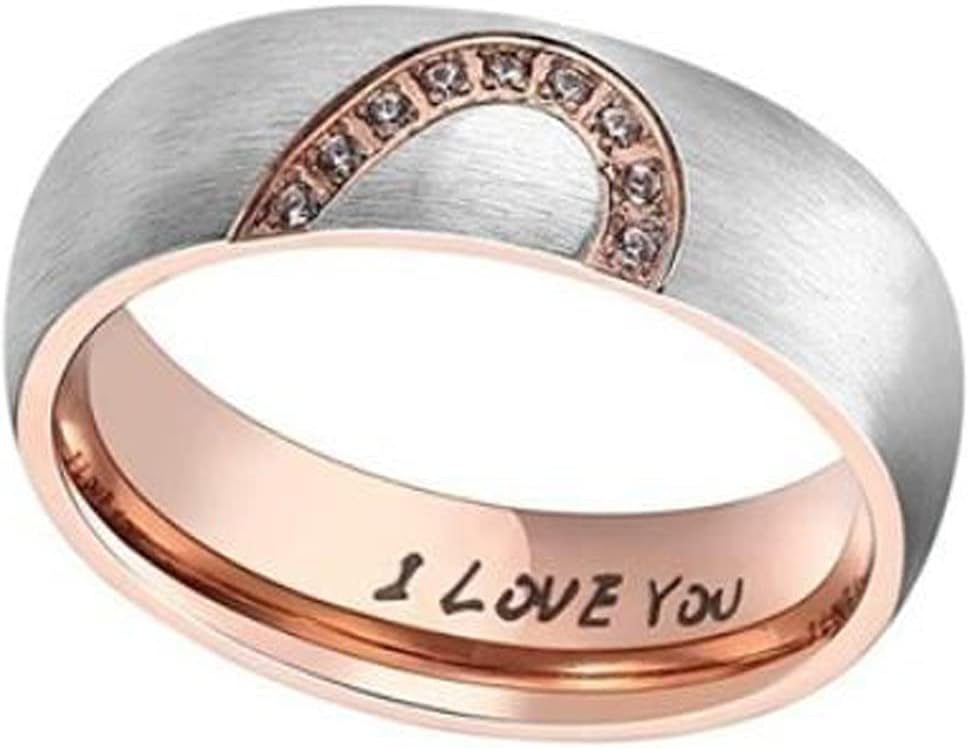 خاتم وعد بتصميم قلب الحب الحقيقي من هيز اند هيرز مصنوع من التيتانيوم والستانلس ستيل للازواج محفور عليه عبارة I Love You، خاتم علوي مناسب كهدية للصديقة والصديق