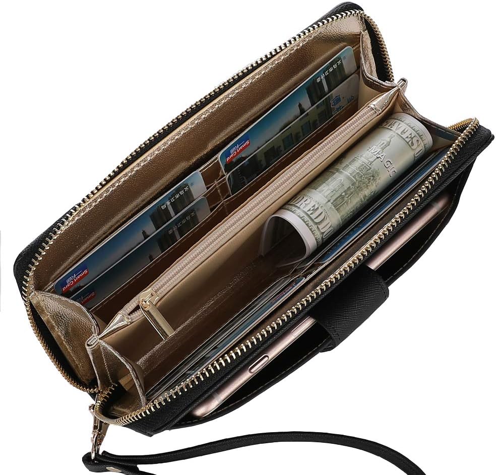 - Roomy Storage : Can Hold 8 Pcs Credit Cards, Cash, Coins, Bills and Cellphone iPhone 7/8 Plus, iPhone X and Galaxy S9 etc.