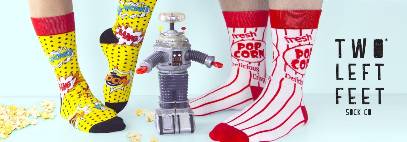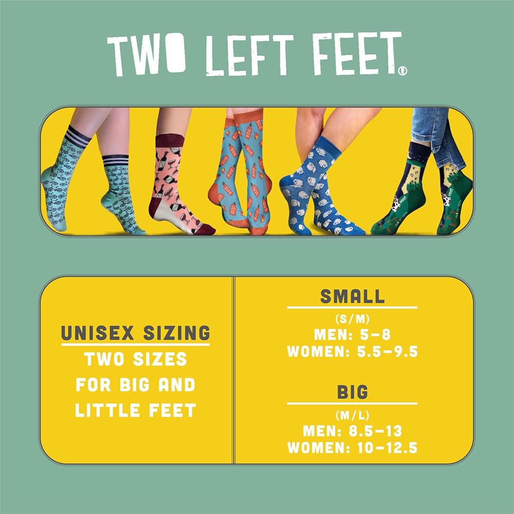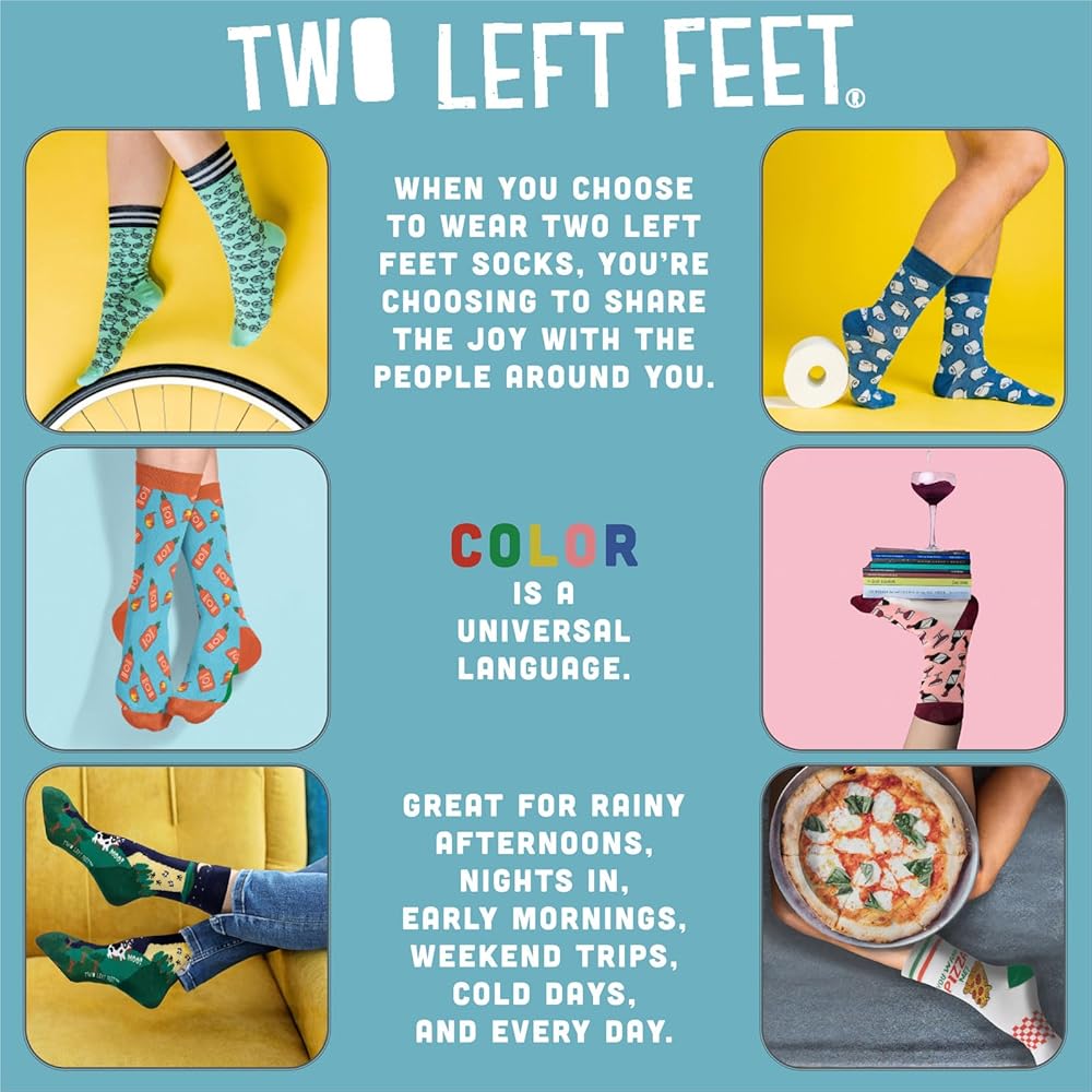 Two Left Feet is a unique collection of high-quality socks with quirky style and a good dose of humor. These loud and proud super soft socks are made with precise attention to detail. The wide assortment of fun themes have a personality all their own. Ranging from self-scorning (but versatile) solids to unapologetically unique patterns, each original style has two sizes for large and smaller feet. They make a memorable gift for the crazy fun people in your life. Show off your awesomeness and turn heads with these totally cool threads.
