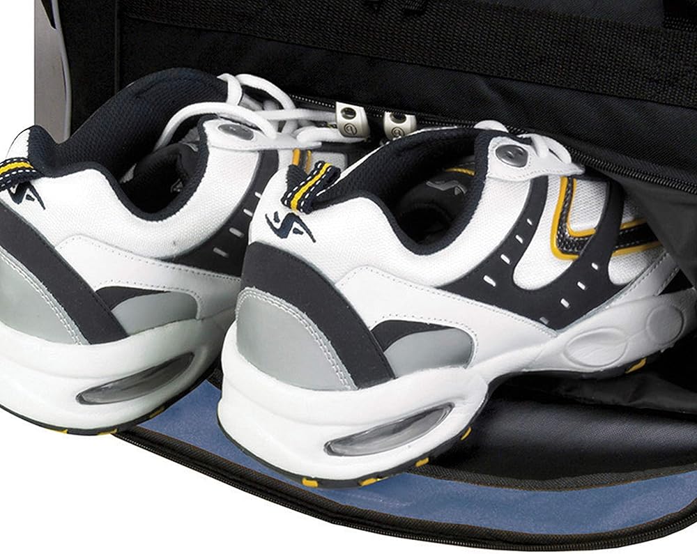- Exterior front accessory pockets including side wet shoe pocket and ventilation holes. Fully-lined interior with spacious main interior compartment