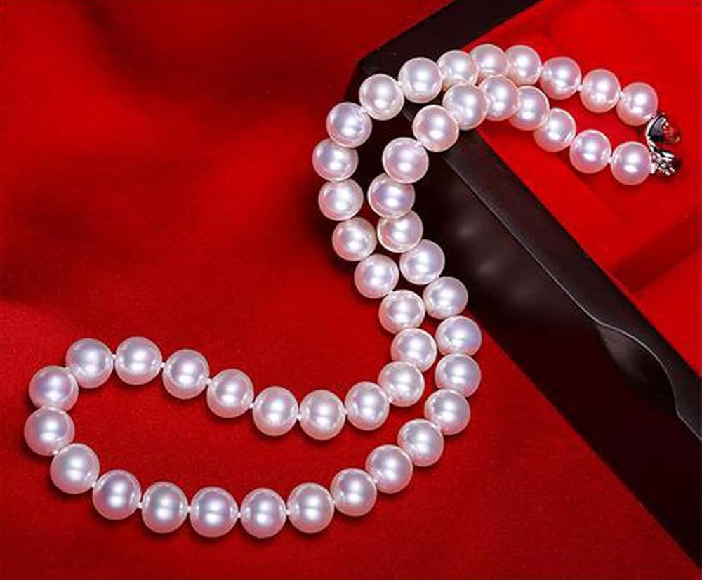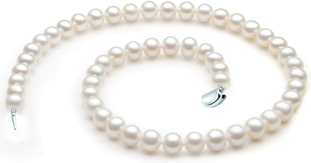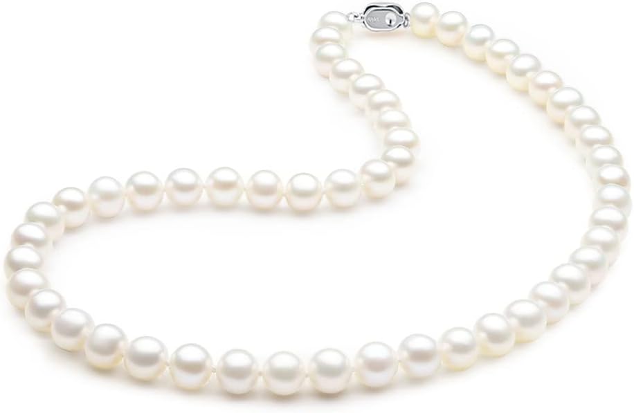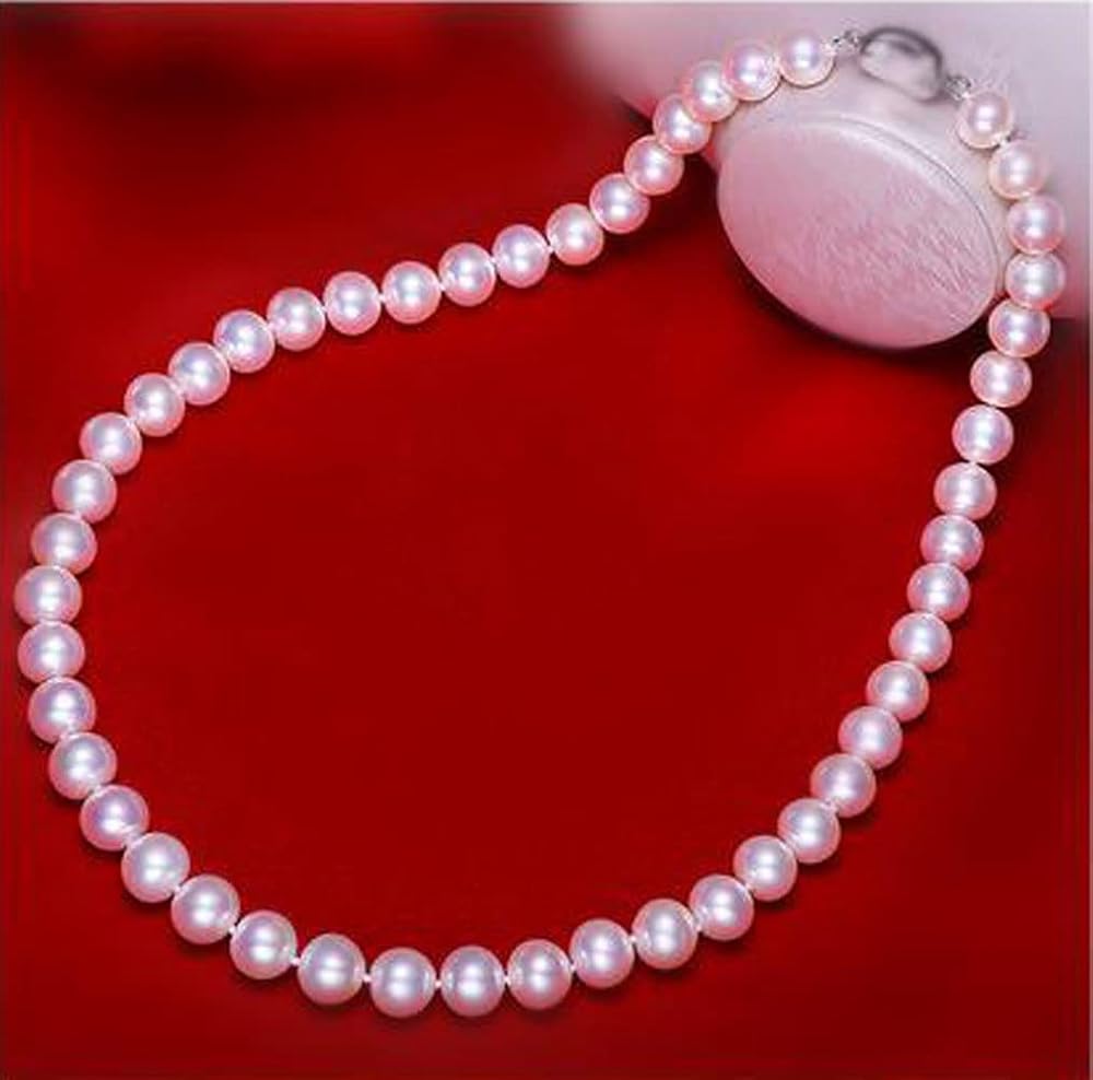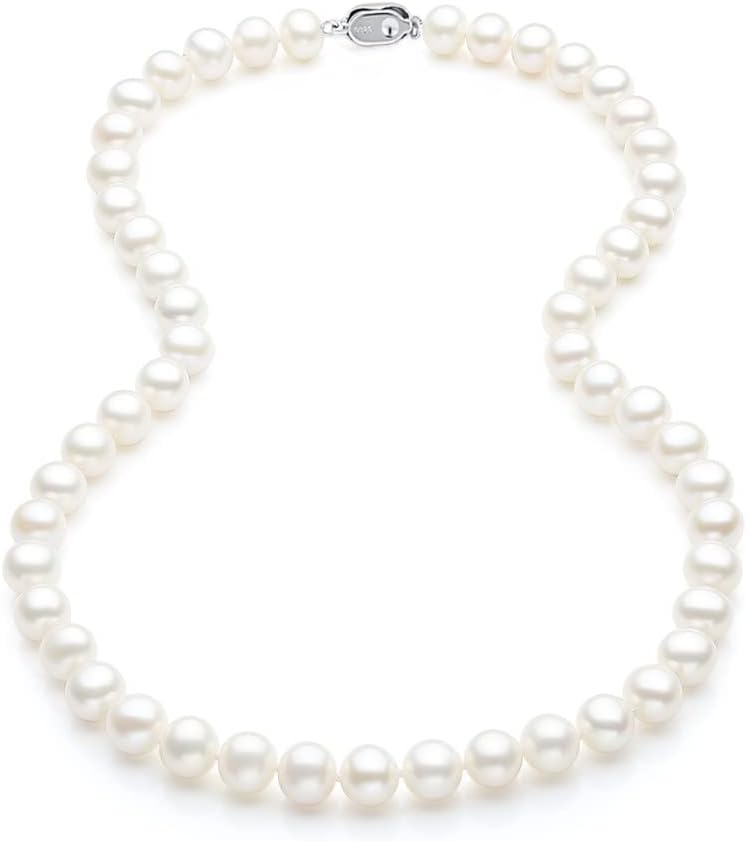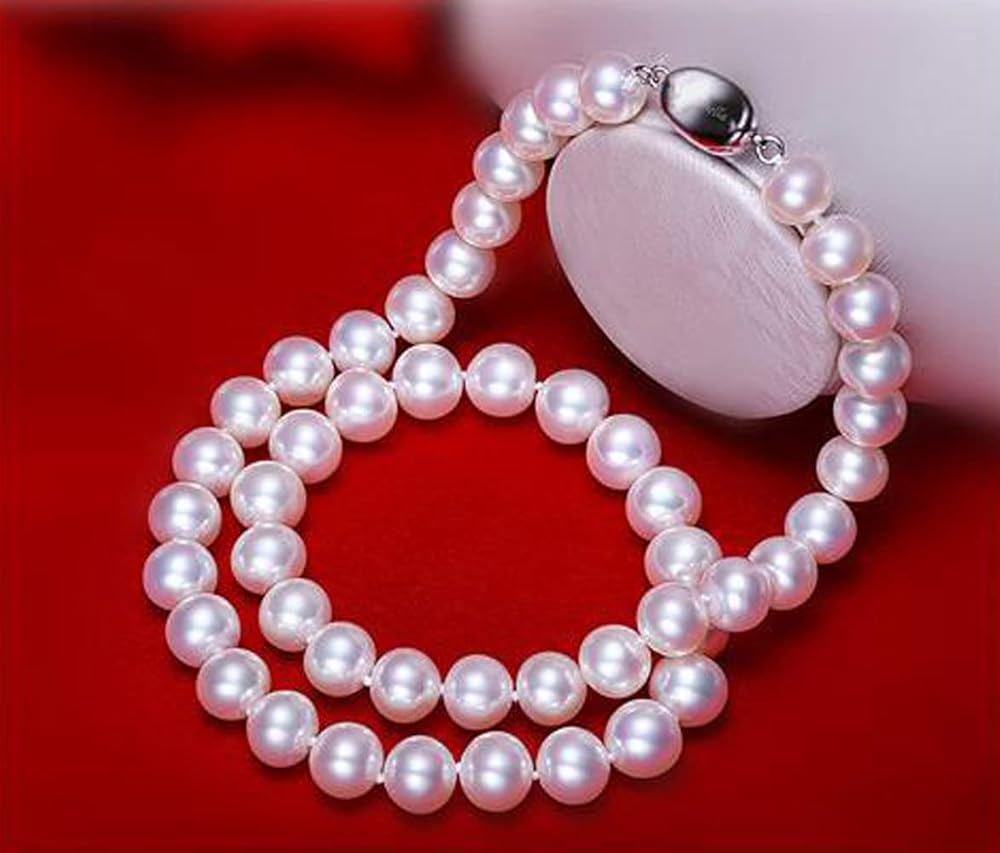 عقد من الفضة الاسترلينية عيار 925 مقاس 7.5-8.5 ملم ايه ايه ايه الاصلي المستزرع في المياه العذبة واللؤلؤ الابيض هدية عيد الام - 18 انش، 7.5 ملم - 8.5 ملم، لؤلؤي، لؤلؤ, 7.5mm-8.5mm, لؤلؤة, لؤلؤة