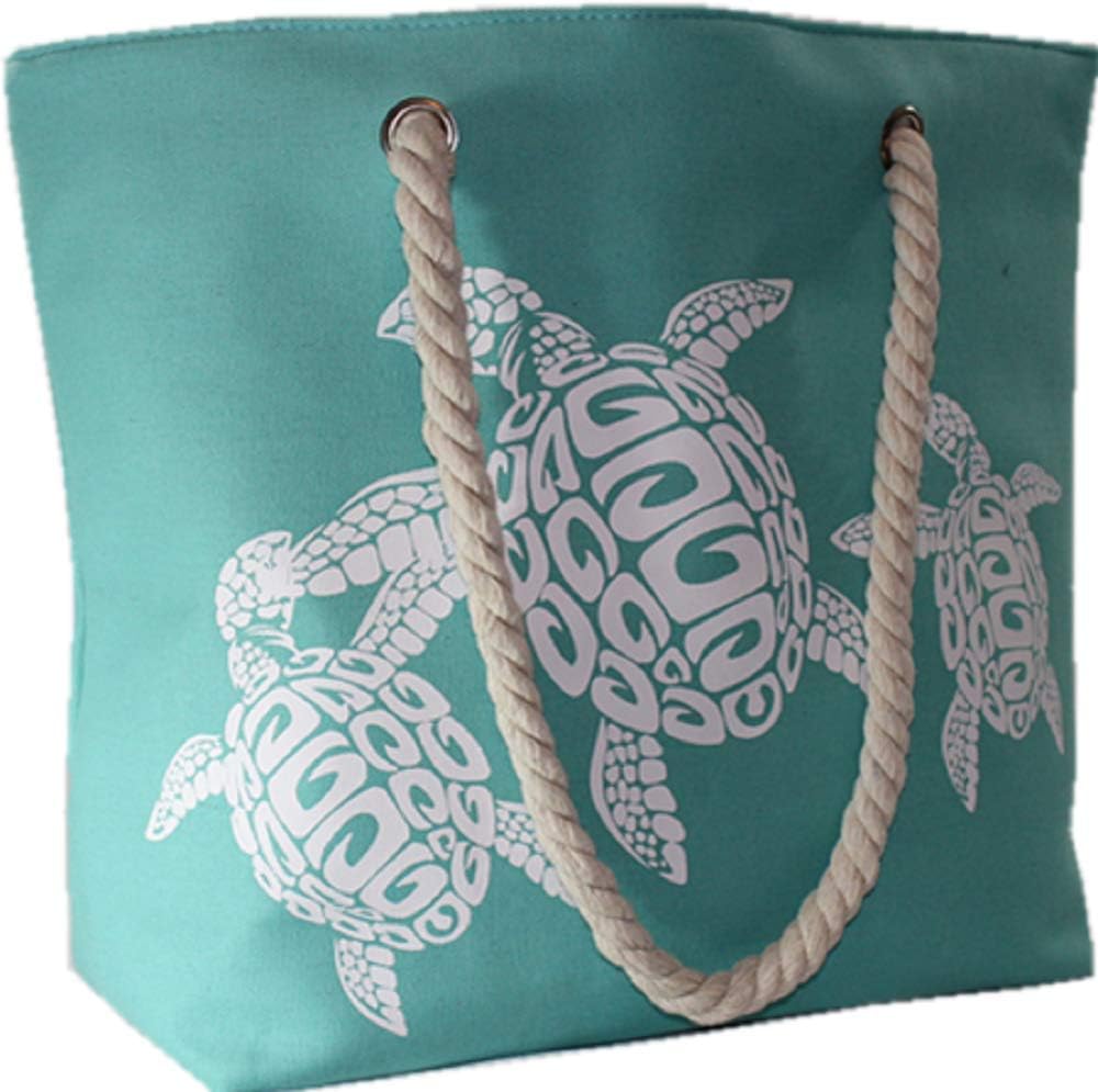 حقيبة شاطئ أكوا مع سلاحف البحر البيضاء سستة أعلى كامل مقبض الحبل داخل الجيب 20 بوصة × 15 بوصة × 6.5 بوصة TS-28A