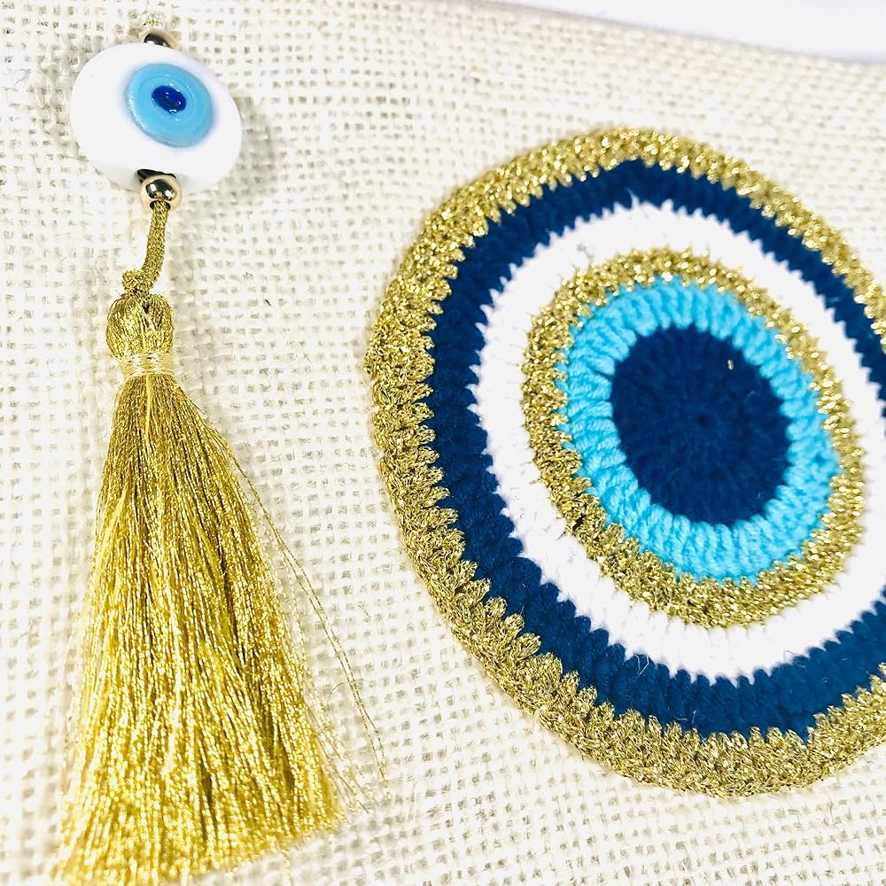 مصنوعة من الحياكة على شكل عين الحسد - خرز عين الحسد الزجاجية وشرابة
