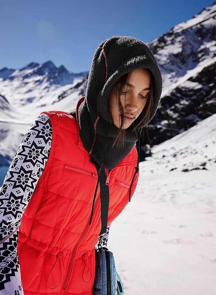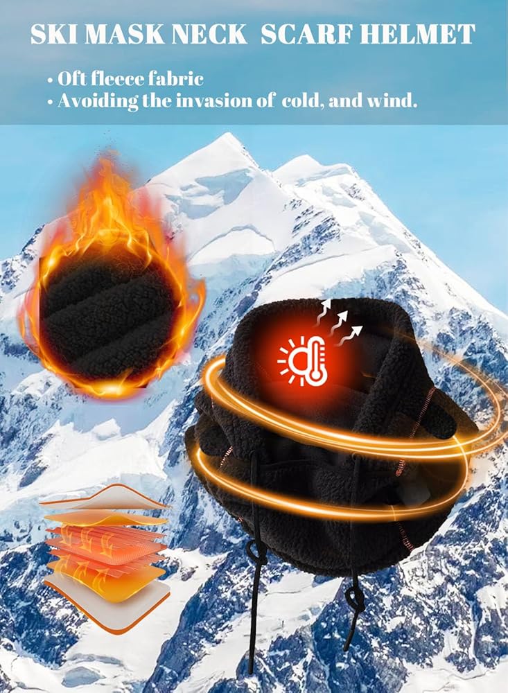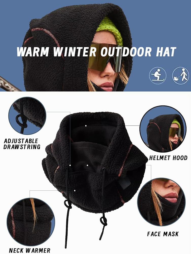 المزايا: نسيج صوفي ناعم، تصميم مطبوع بالكامل، صورة ظلية كسولة، غطاء رأس برباط قابل للتعديل لمنع دخول الرياح والثلج بشكل أفضل، قناع تزلج عالمي مقاوم للرياح للرجال والنساء، مناسب للجميع.