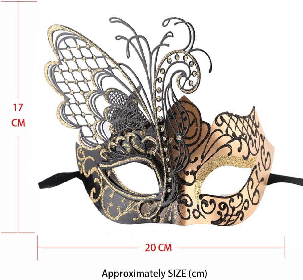 Package: 1 X Masquerade Mask for Women with Butterfly Metal Deco and Silk Ribbon