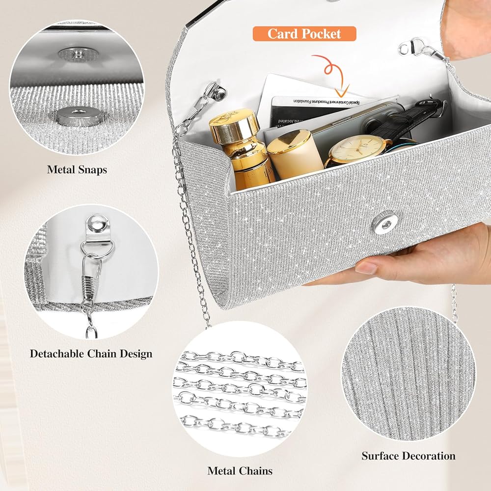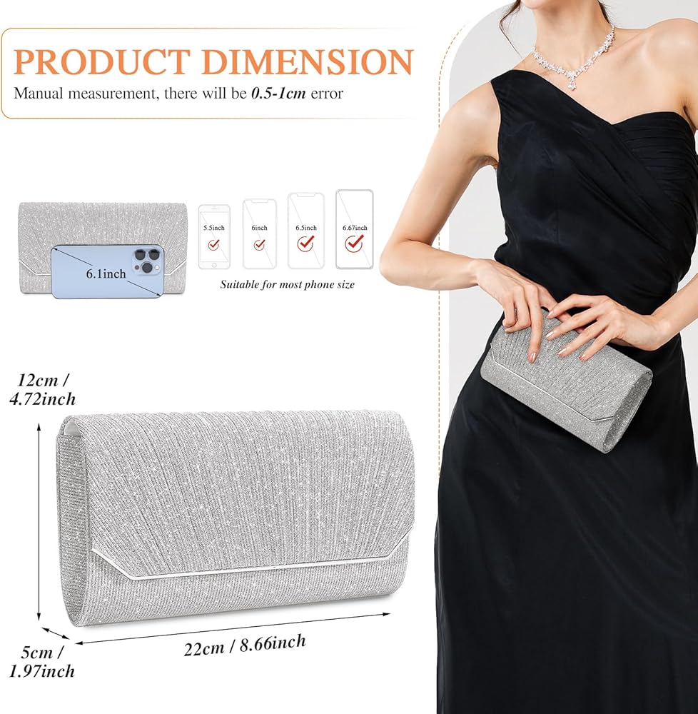 ✿✿MATERIAL --- This evening bag which is made of quality glitter material and exquisite hardware, cute looks, elegant envelope shape, smooth and soft touching, magnetic button closure, and one inside opening pocket.