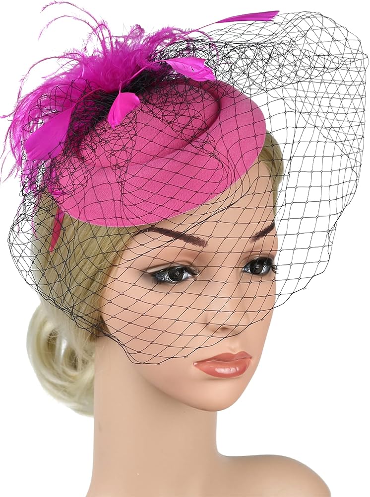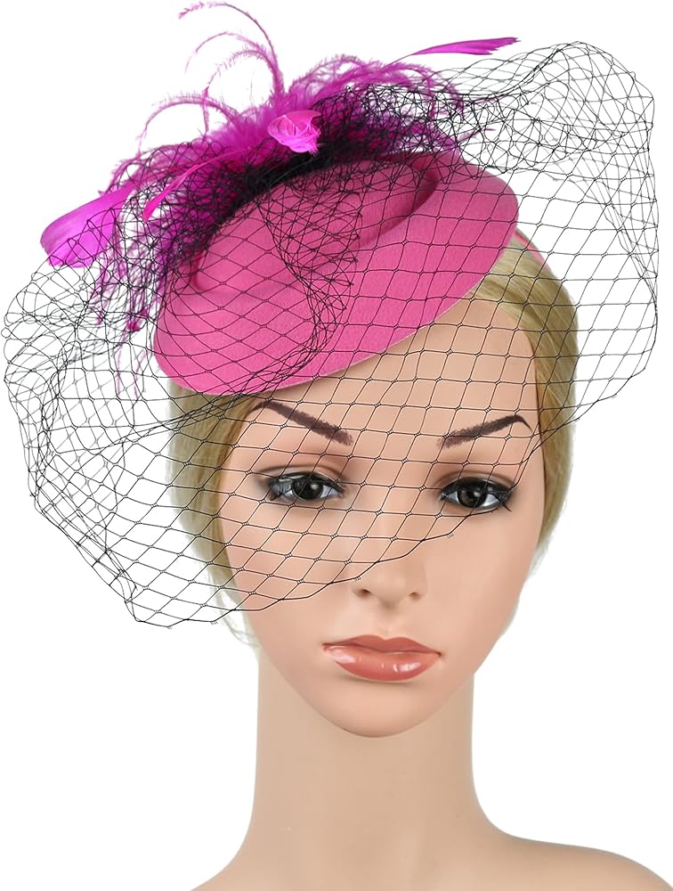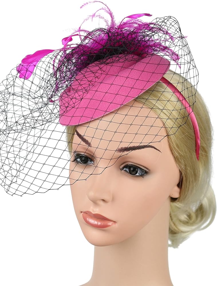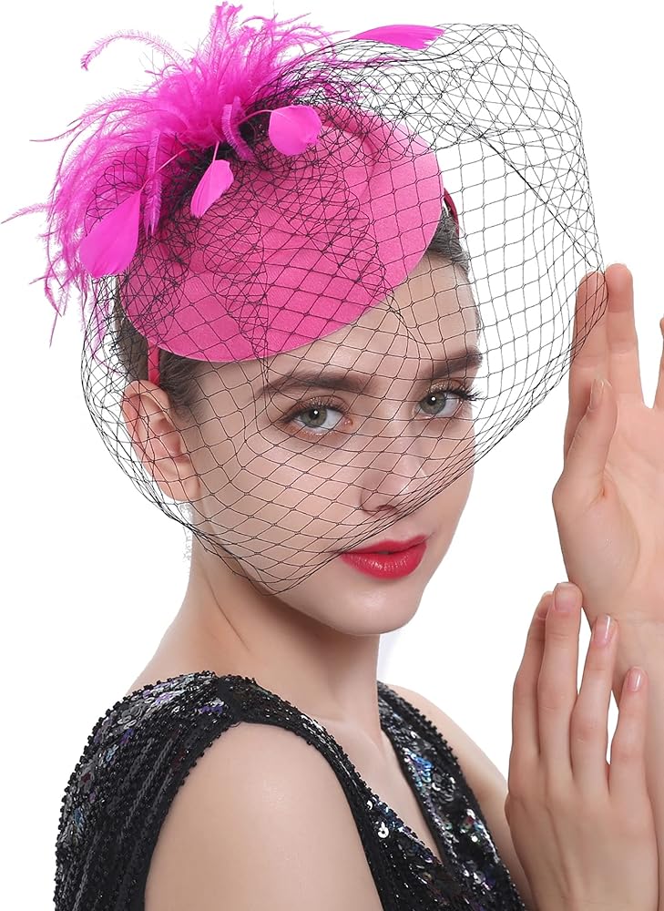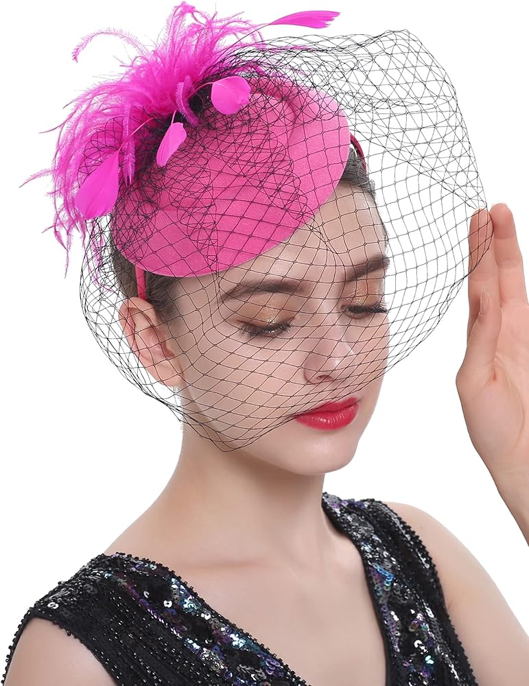 【قبعة رائعة أنيقة】قبعات فاسيناتورز للسيدات مصنوعة من مادة شبكية وريش صناعي، وهي موثوقة وجودة، كما أنها خفيفة الوزن وقابلة لإعادة الاستخدام، والتصميم العام يبدو عتيقًا جدًا ويمكن تطبيقه لتعديل شكل وجهك وشعرك ومكياجك. ، مما يجعلك تبدو أنيقًا جدًا