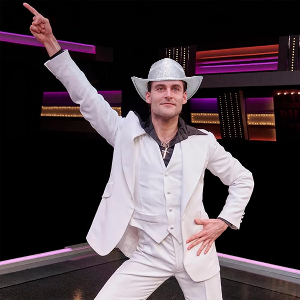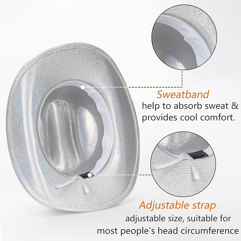 • قبعة ديسكو رعاة البقر: قبعة رعاة البقر لحفلات أعياد الميلاد، وإكسسوارات أزياء الهالوين. إنها مثالية كإكسسوار رائع لمعظم ملابس الدنيم للبالغين، لكل من الرجال والنساء لارتداء فساتين الحفلات الراقصة أو الحفلات أو العطلات أو الحياة اليومية للحصول على مظهر رقيق. لامعة تحت الشمس أو الضوء، تجعلك مميزًا بين الآخرين.