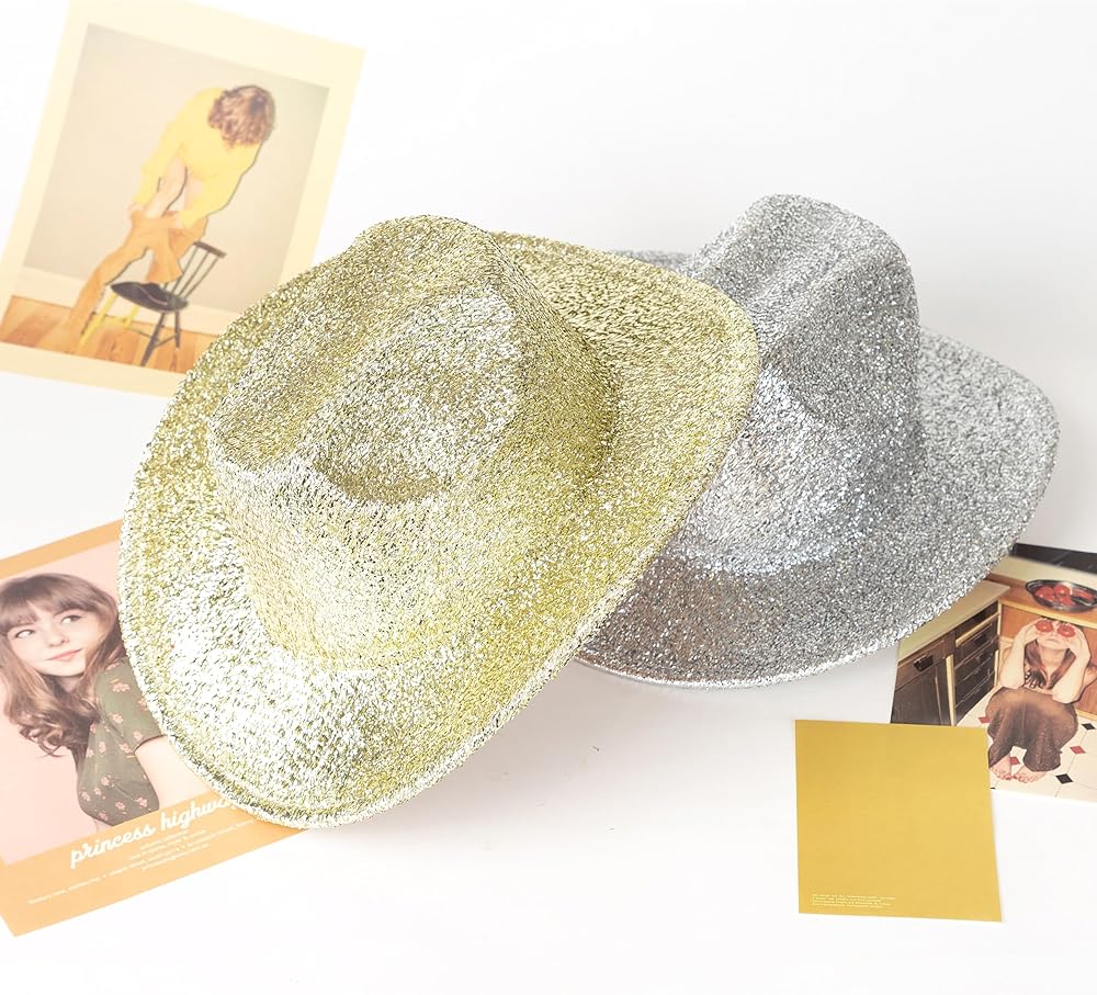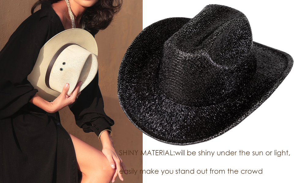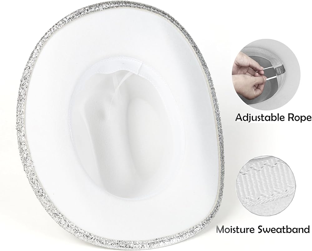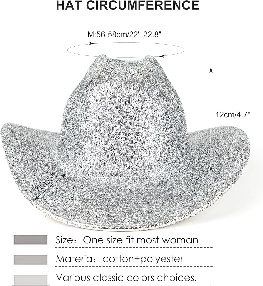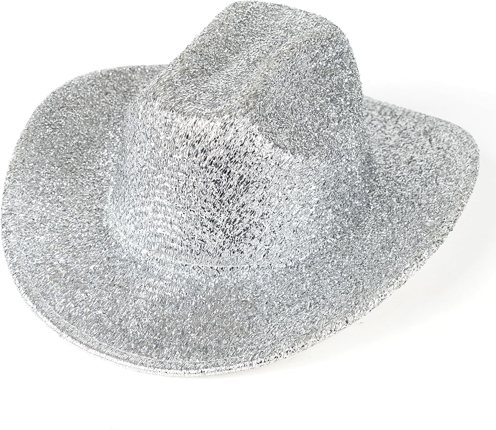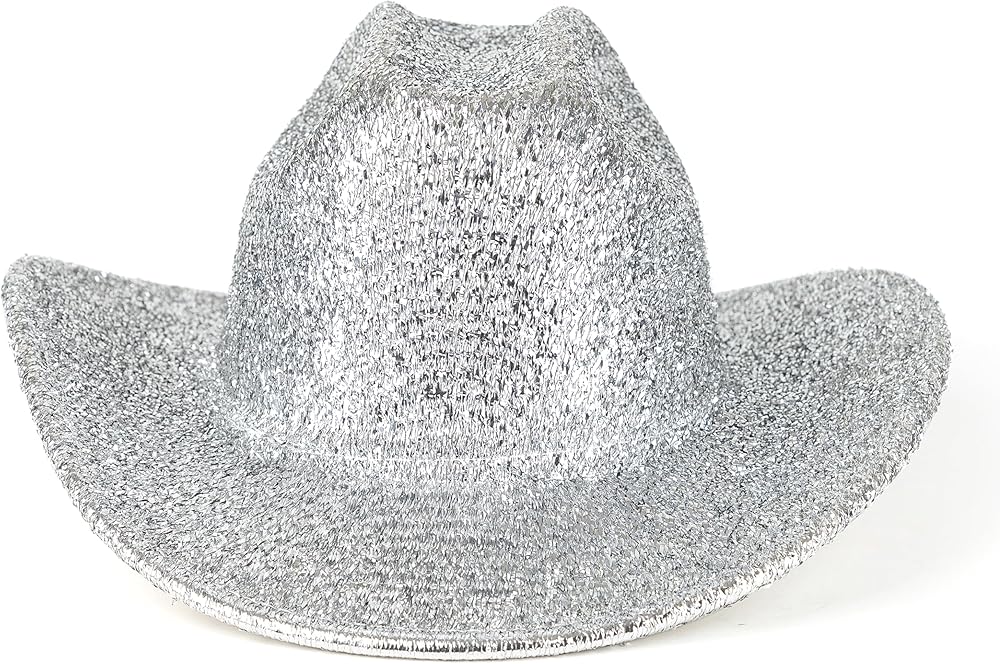 قبعة راعية البقر الفضية من HUDANHUWEI، قبعة رعاة البقر الغربية اللامعة لمهرجان الحفلات