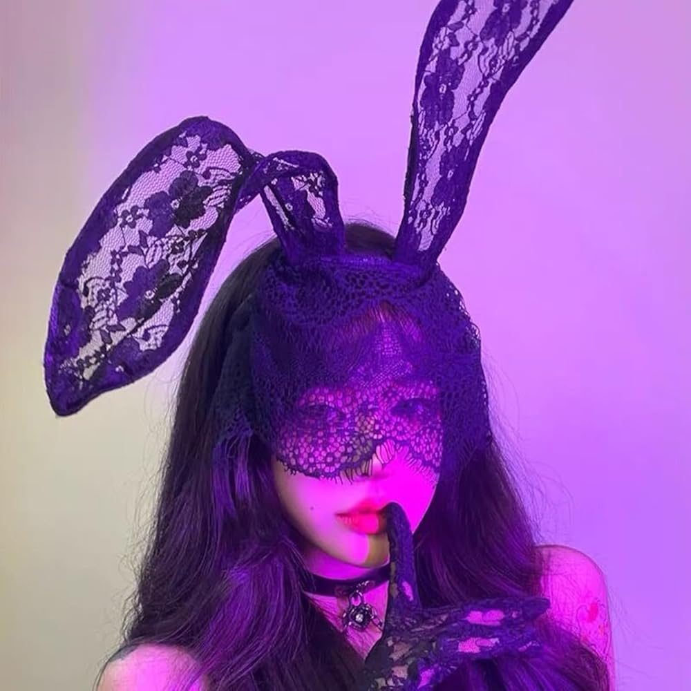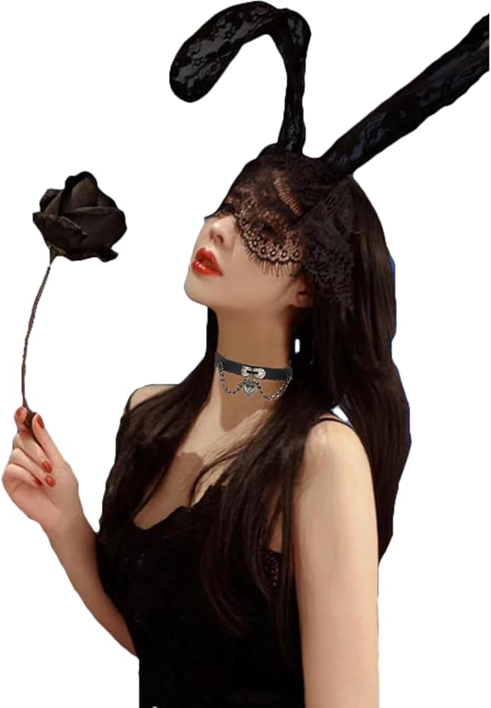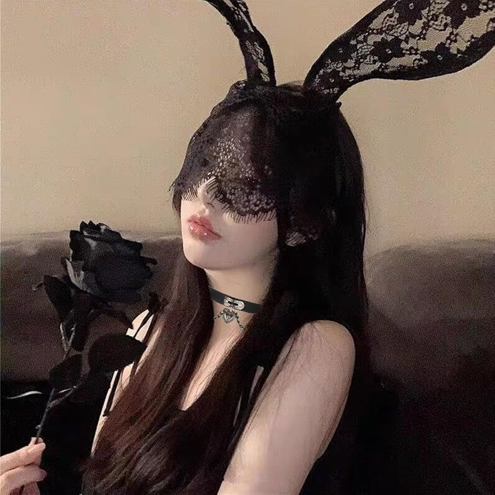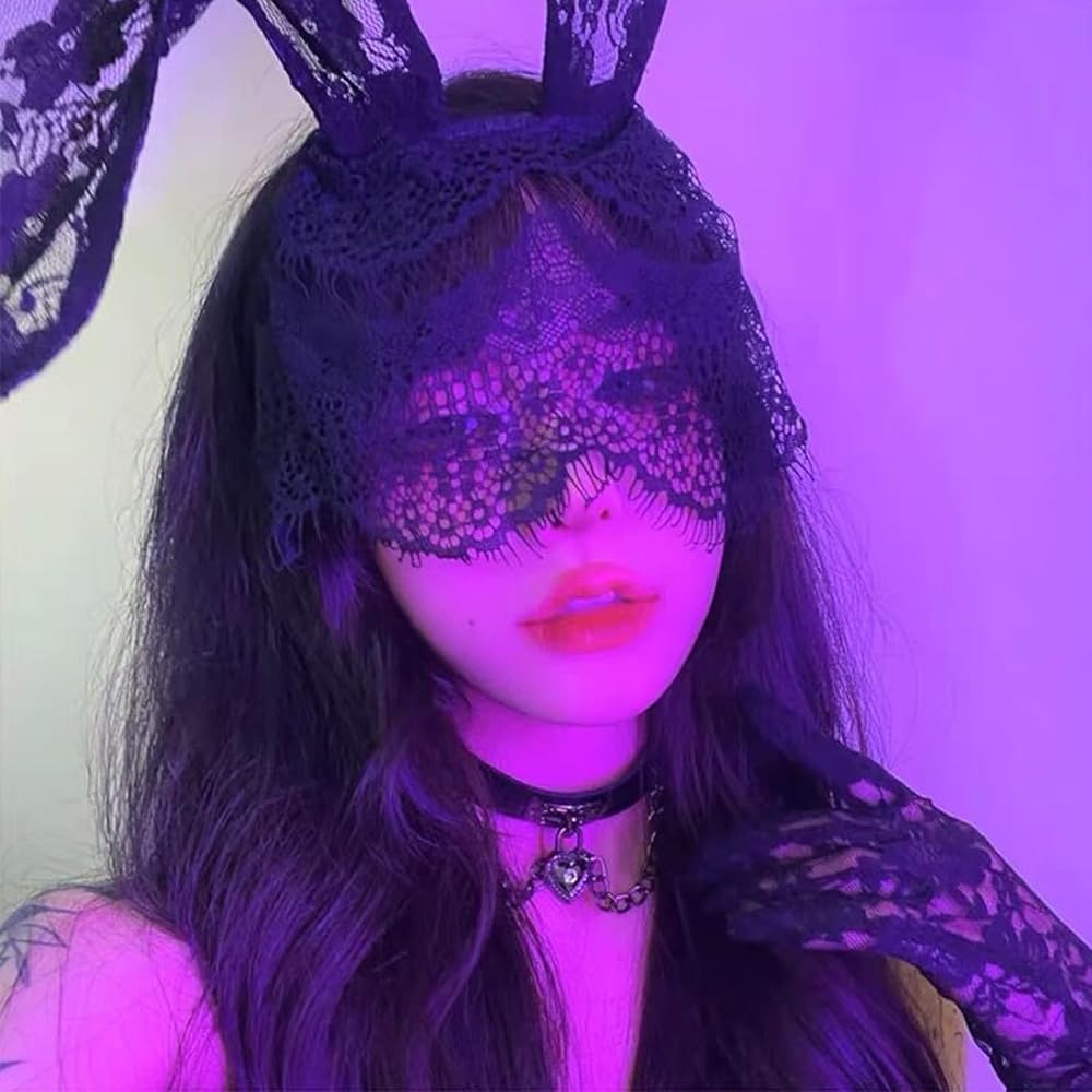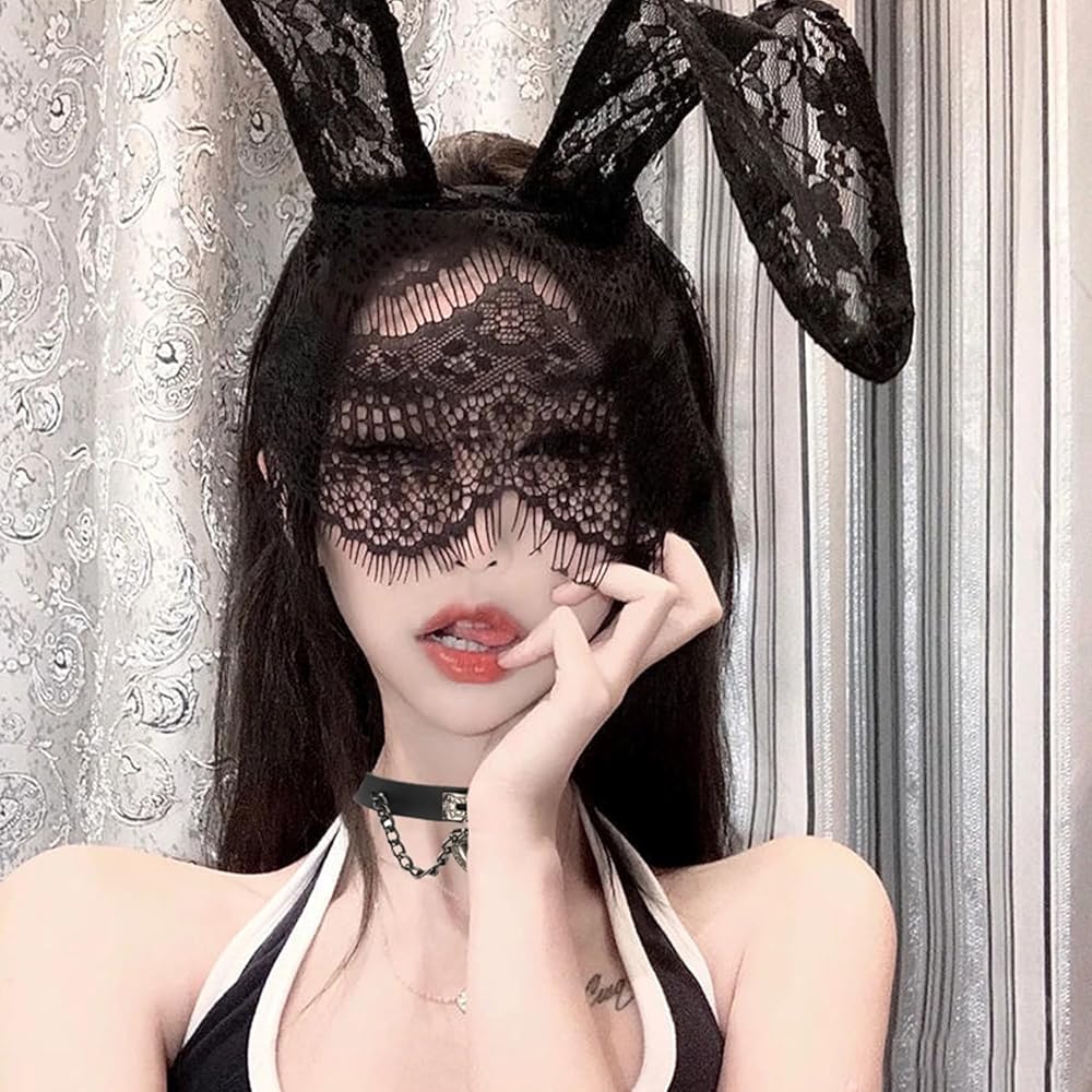 YIUWLMN قطعتان من الدانتيل المثير آذان أرنب من الدانتيل الأسود المليء بالغموض (الحفلة، التاريخ، الأزياء التنكرية، المهرجانات) دع جمالك في الضباب كما لو كان مخفيًا