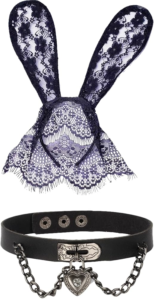 【Sexy lace bunny ears veil material】: black lace and wire combination. The shape of the wire can be adjusted according to the size of your head. Sexy black pu leather collar with alloy love locks and chains, unique dress up the first time to spread the charm.