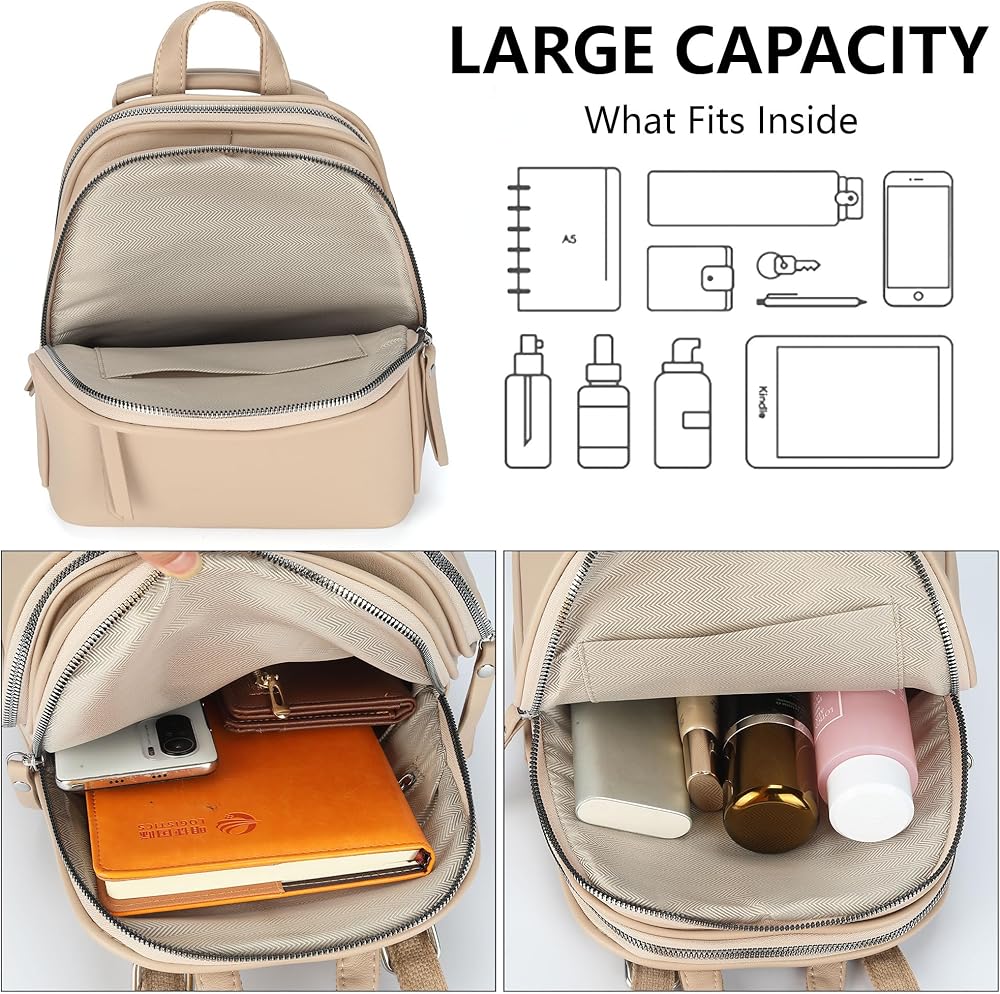【جيوب متعددة بحجم مثالي وأشرطة كتف قابلة للتعديل】حجم حقيبة الظهر النسائية هذه 9.5 × 4.3 × 10 (الطول × العرض × الارتفاع بوصة). تحتوي حقيبة الظهر الأنيقة هذه على جيبين رئيسيين بسحاب (مع حجرة واحدة وجيب بسحاب بالداخل)، وجيب أمامي واحد. جيب بسحاب، وجيب خلفي بسحاب. يمكن أن تحمل جميع أغراضك الصغيرة وأجهزة iPad والكتب وما إلى ذلك. أحزمة الكتف الخاصة بحقيبة الظهر الصغيرة هذه قابلة للتعديل بحرية، مما يسمح لك بتعديلها حسب الحجم الذي يناسبك.