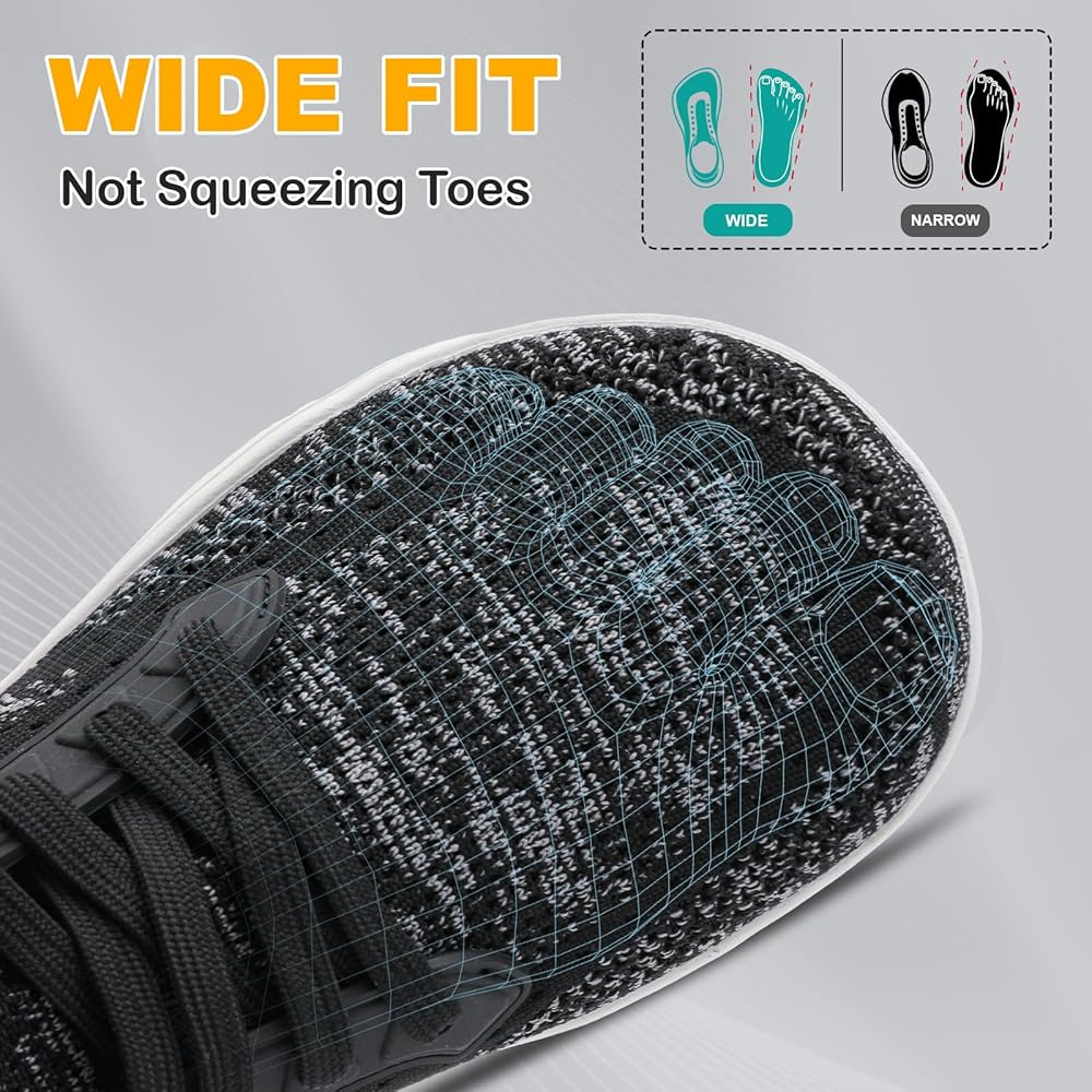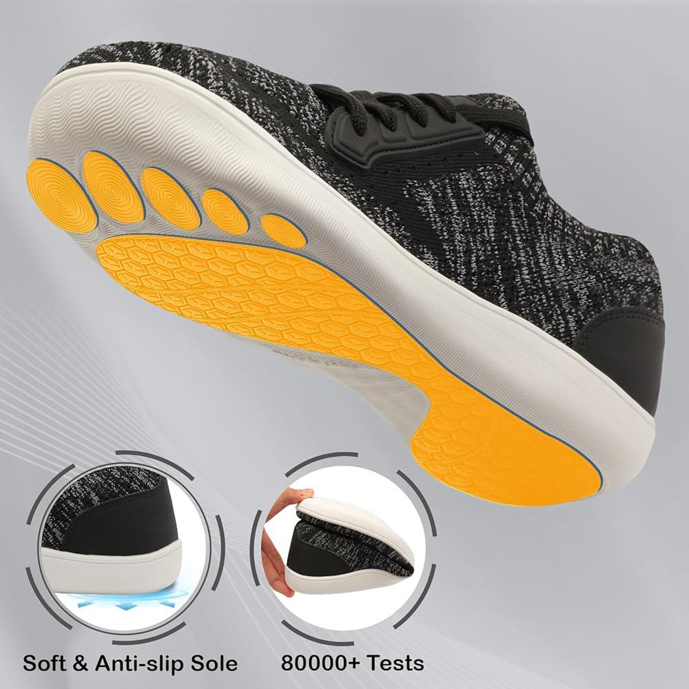 نعل بدون سقوط: الأحذية الكاجوال ذات المقدمة العريضة مصممة بنعل أوسط بدون سقوط، تجعل القدم في حالة طبيعية وتقلل من ضغط النعل، تمامًا مثل المشي على الأرض المسطحة. يمكنها تحفيز تمرين عضلات القدم، مما يجعل المشي أسهل وأكثر فائدة