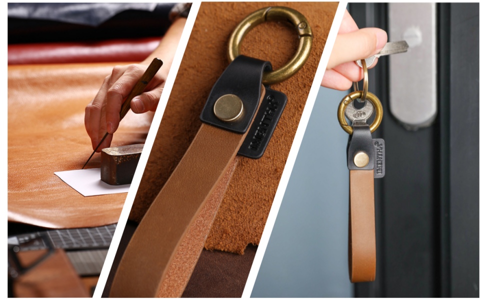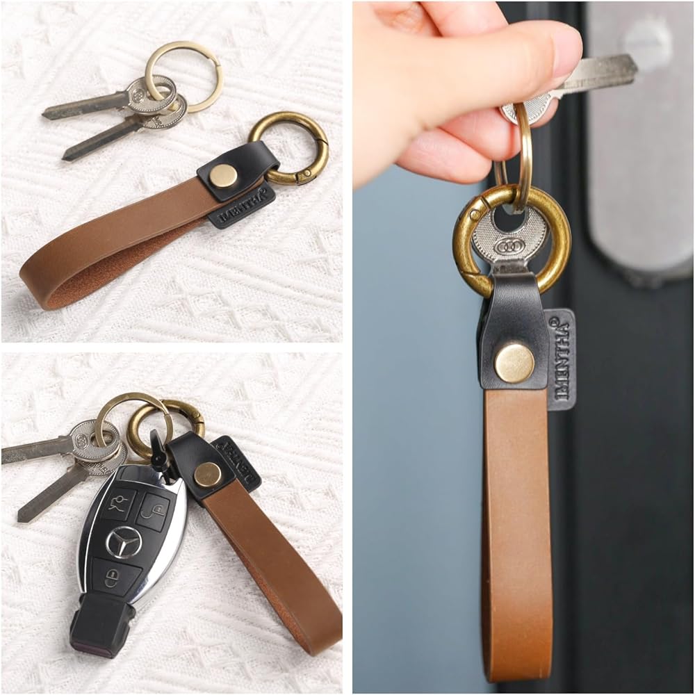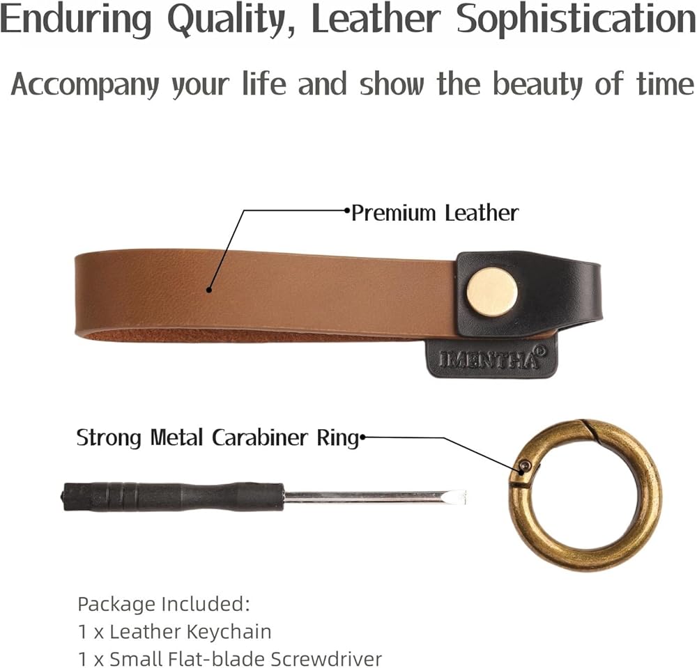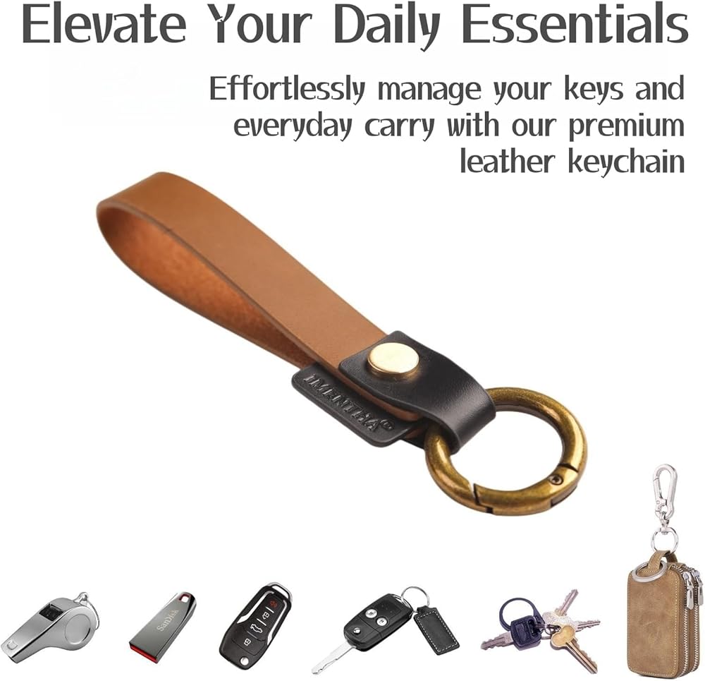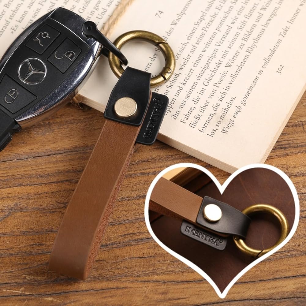 جودة فاخرة: مصنوعة يدويًا من الجلد الأصلي ومزودة بحلقة مفاتيح متينة من سبيكة معدنية، توفر سلاسل المفاتيح الخاصة بنا جودة وموثوقية لا مثيل لها ستصمد أمام اختبار الزمن. ارتقِ بأسلوبك مع سلاسل المفاتيح الجلدية من Imentha.