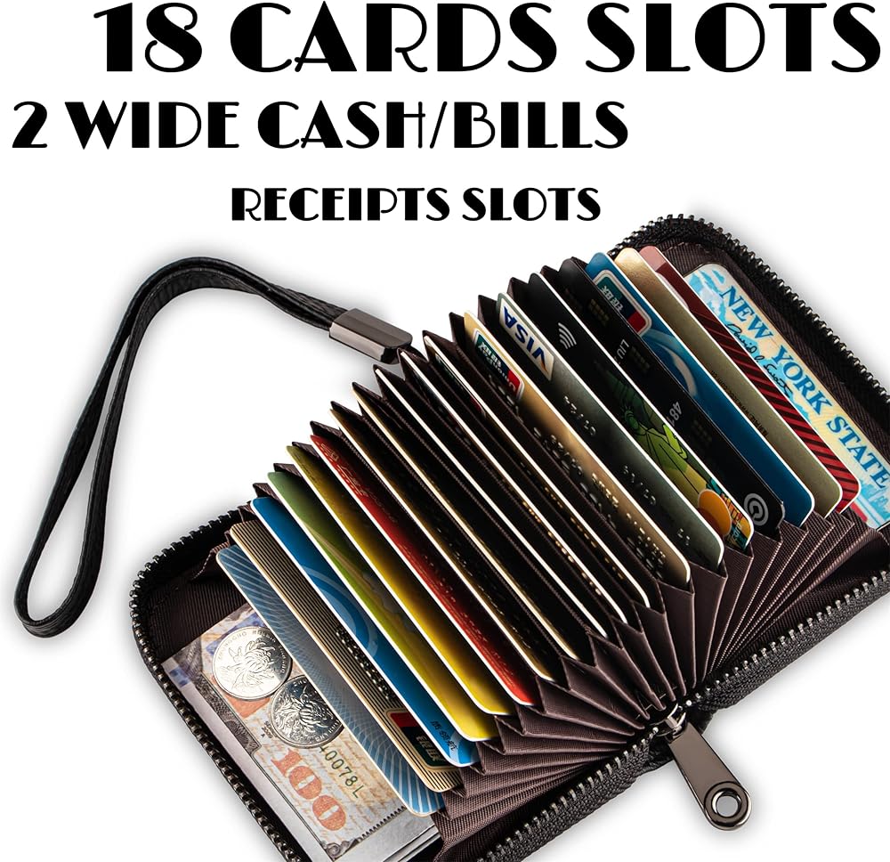 【تخزين فتحات بطاقات متعددة】: يحتوي حامل البطاقة على 18 فتحة للبطاقات وفتحتين واسعتين للنقود/الفواتير/الإيصالات. إنها مساحة كافية لجميع بطاقاتك. يناسب أنواع مختلفة من البطاقات: بطاقة الهوية، وبطاقات الائتمان، وبطاقات العمل، والبطاقات الطبية، وبطاقات الهدايا، وبطاقات الخصم، ورخص القيادة وما إلى ذلك والفواتير والنقود المطوية والإيصالات. يجعل حياتك مريحة وسهلة!