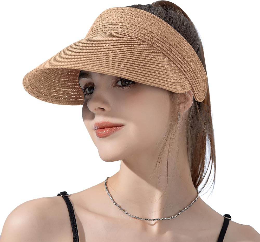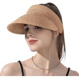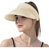 قبعة للوقاية من الشمس للنساء من القش قبعات ذات حافة كبيرة للنساء بعامل حماية من أشعة الشمس 50+ قبعات صيفية قابلة للتعبئة على شكل ذيل حصان للسفر للنساء