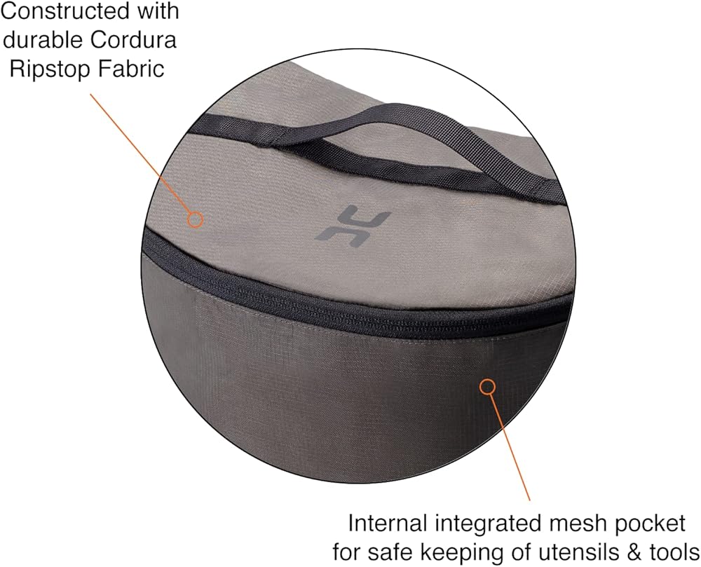 المميزات: جيب شبكي داخلي مثالي لتنظيم وفصل وحماية العناصر الصغيرة مثل الأواني/الأدوات بالإضافة إلى العناصر الكبيرة مثل المواقد والوقود ومعدات الطبخ. سحاب YKK متين وخصائص مقاومة للطقس.