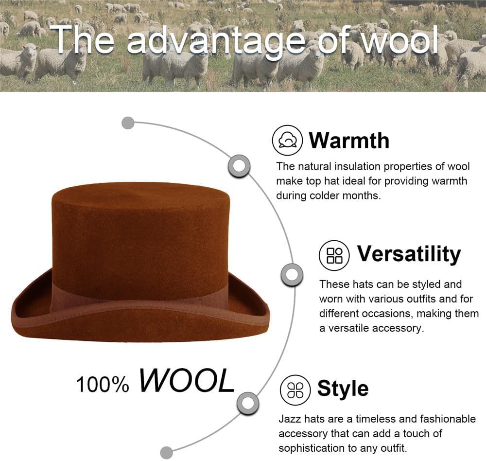 قبعة علوية من الصوف واللباد من بونتشوال جود، قبعة تنكرية طويلة بتصميم فيكتوري بطول 5 انش، هدايا للرجال لحفلات الرقص والكريسماس