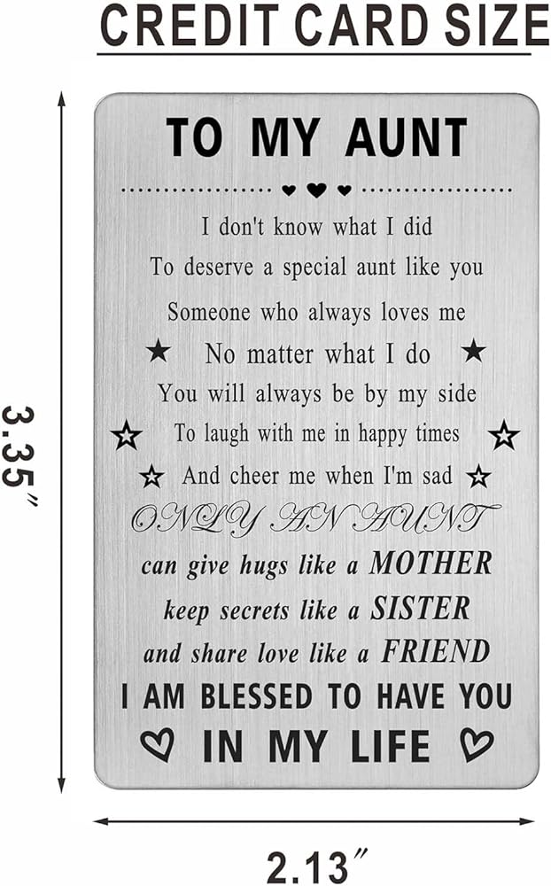 • Aunt Gifts from Nephew Niece - Beautiful card present for your beautiful anut. It can bring smile, joy, and feelings of love and comfort to her. she can carry the meaningful Card around everywhere with your love