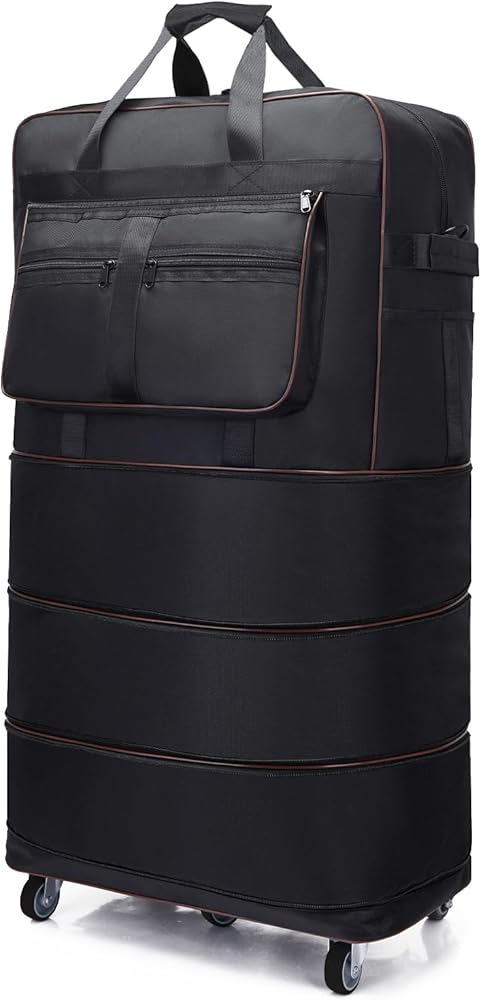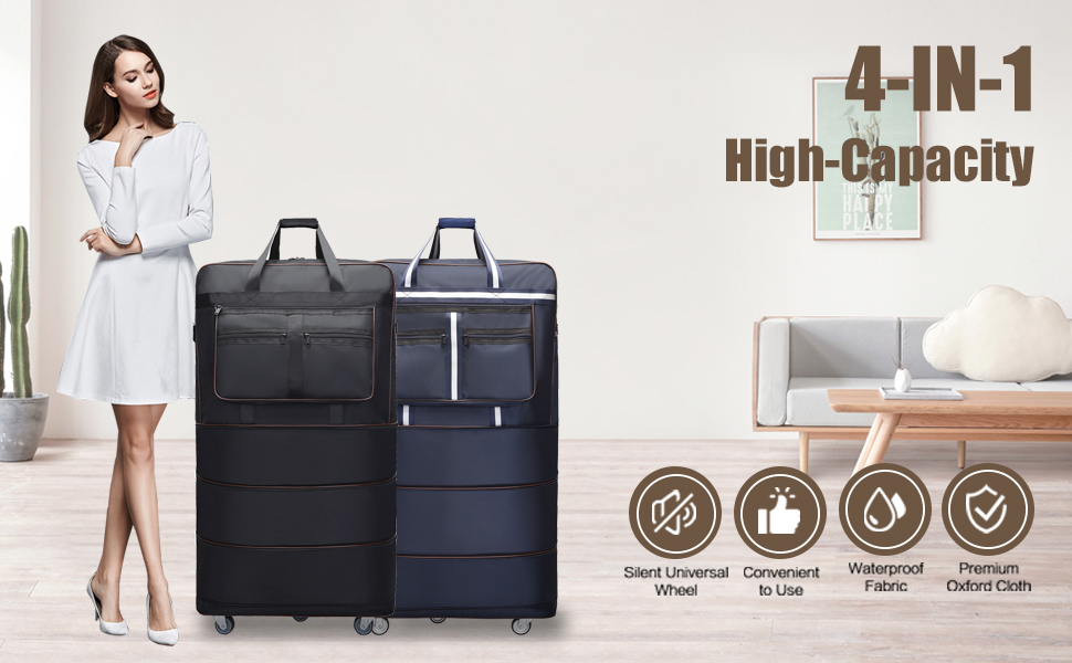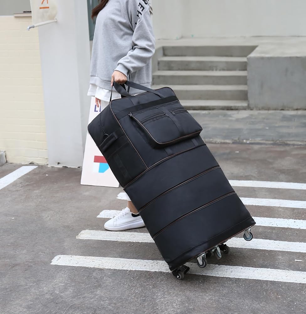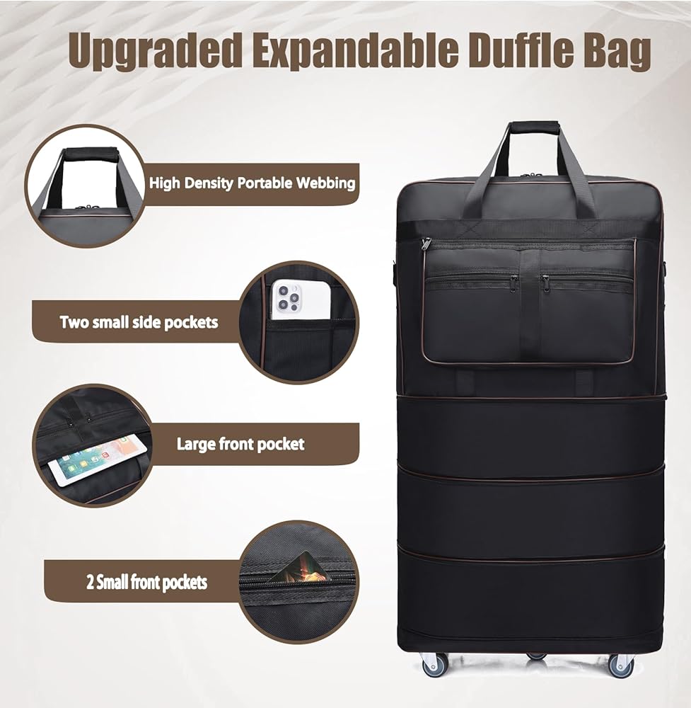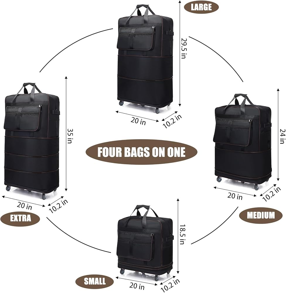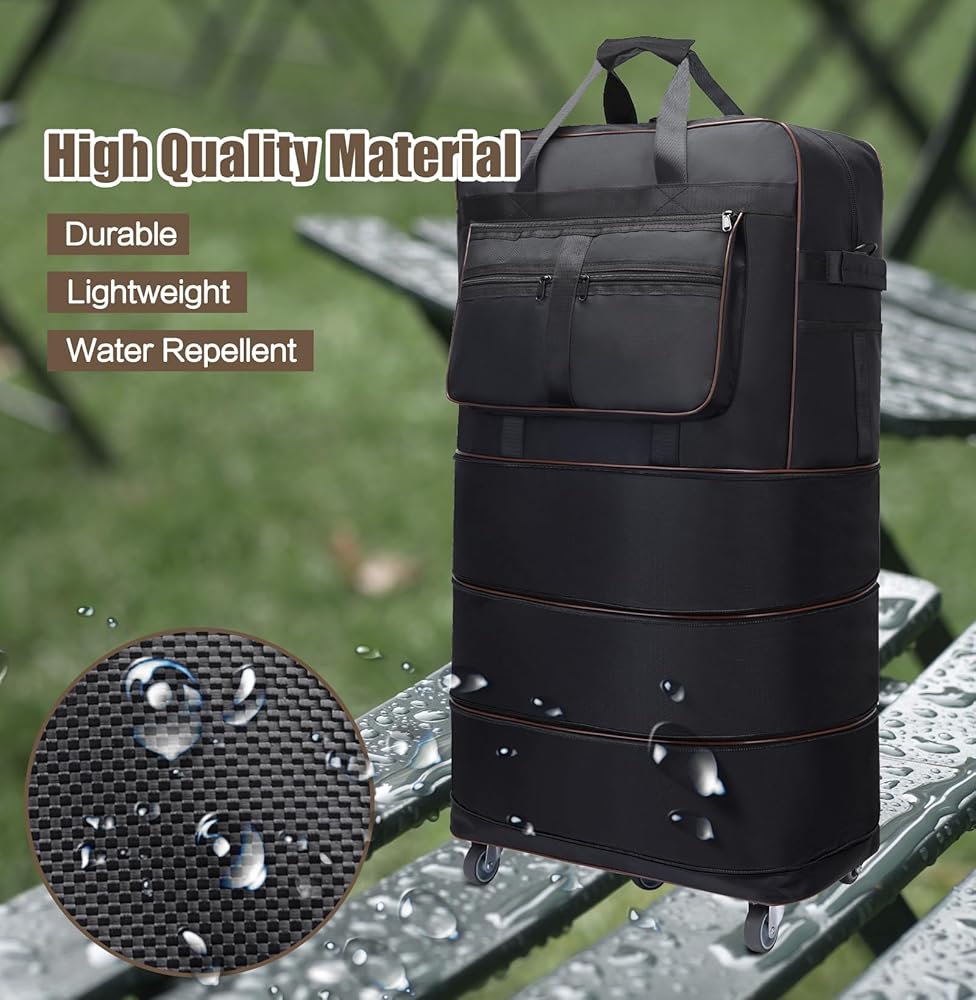 ELDA حقيبة أمتعة قابلة للتوسيع وقابلة للطي، حقائب سفر واق من المطر للرجال والنساء، حقائب سفر ذات سعة كبيرة قابلة للطي مع عجلات دوارة، حزام كتف قابل للإزالة