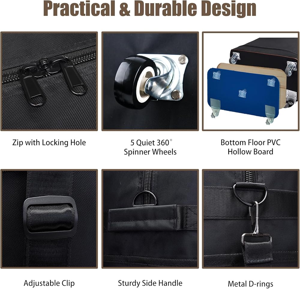 【التصميم】: الجزء السفلي من هذه الحقيبة الكبيرة المتدحرجة مقاس 40 بوصة مصنوع من ألواح خشبية سميكة وألواح مجوفة من البولي فينيل كلوريد لضمان قدرتها على حمل وزن أغراضك دون أن تنهار أو تنكسر. تسمح لك العجلات الخارجية الموجودة في الأسفل بسحب الحقيبة قطريًا دون أن تتلفها، كما أن حزام الكتف القابل للفصل في الخلف يحرر يديك. بشكل عام، هذه الحقيبة الكبيرة عملية للغاية. يجعل رحلتك أسهل.